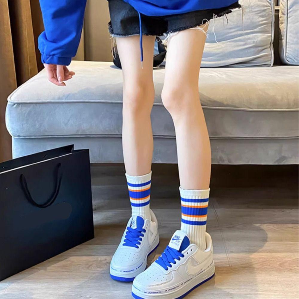 5Pairs Autumn Winter Sports Socks Striped White Socks Trendy Women Socks Couple