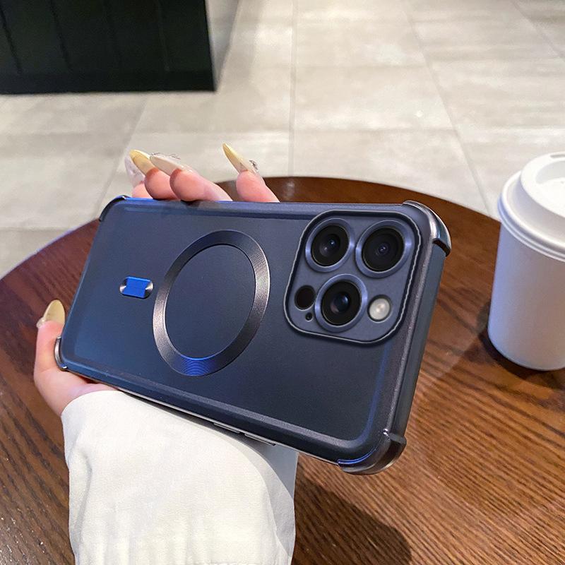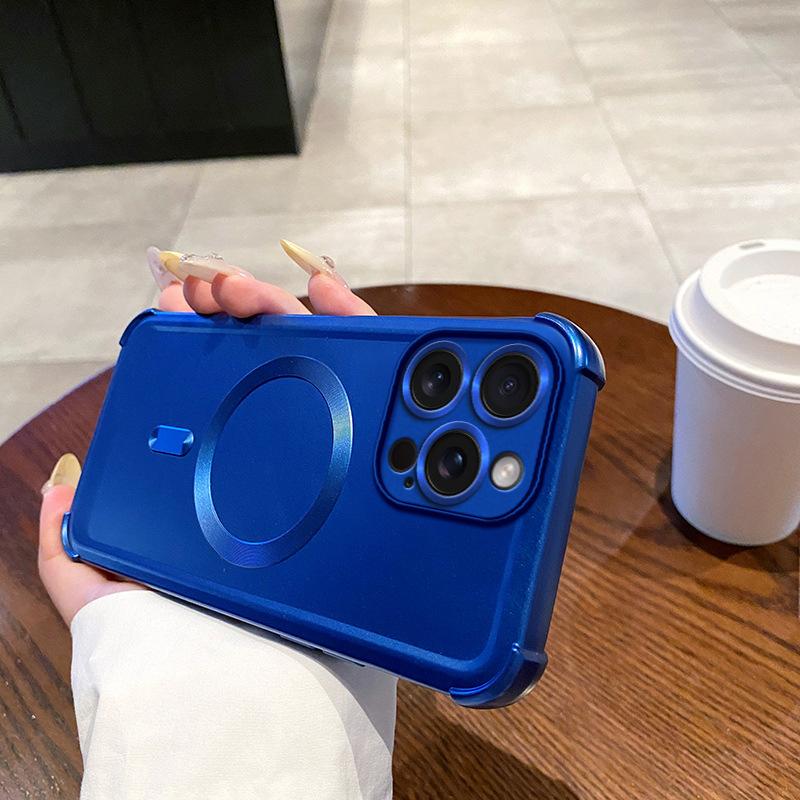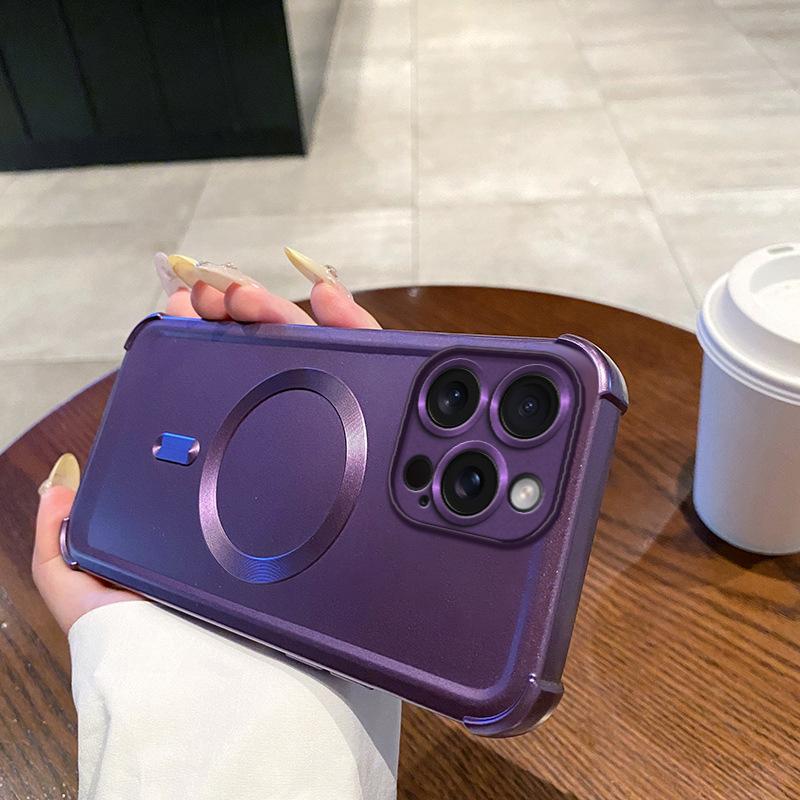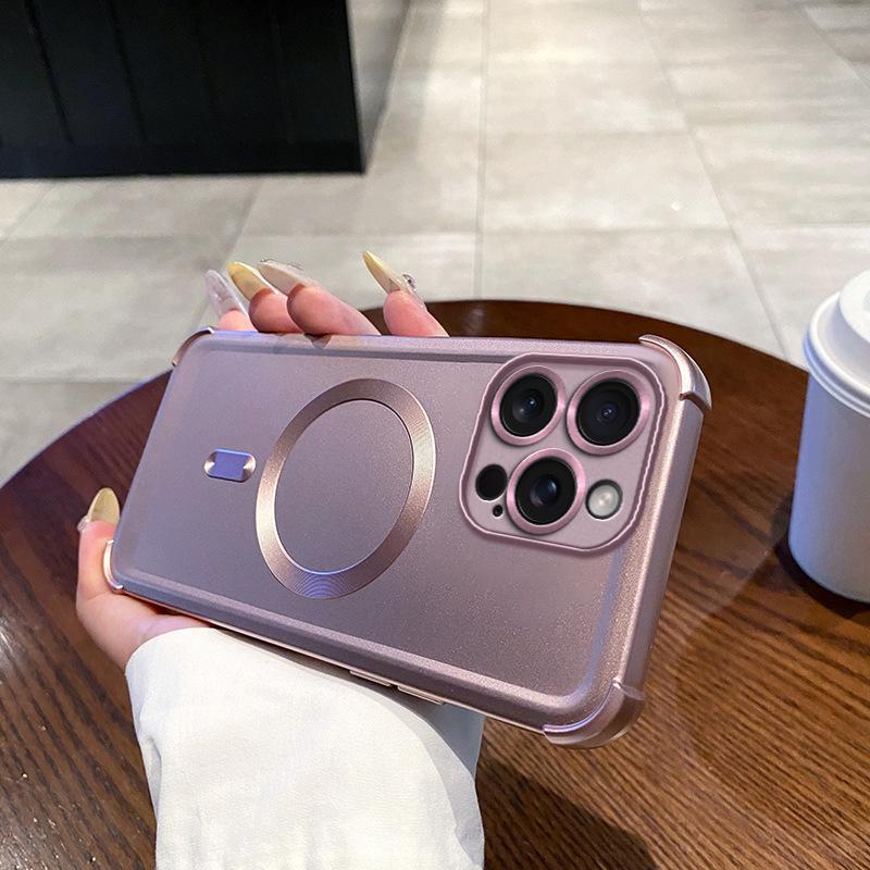 Подходит для iPhone 16 Металлическая краска Магнитная адсорбция Чехол для мобильного телефона Четыре угла Противоударный Защитный чехол с подушкой безопасности для Apple 15 ProMax 14