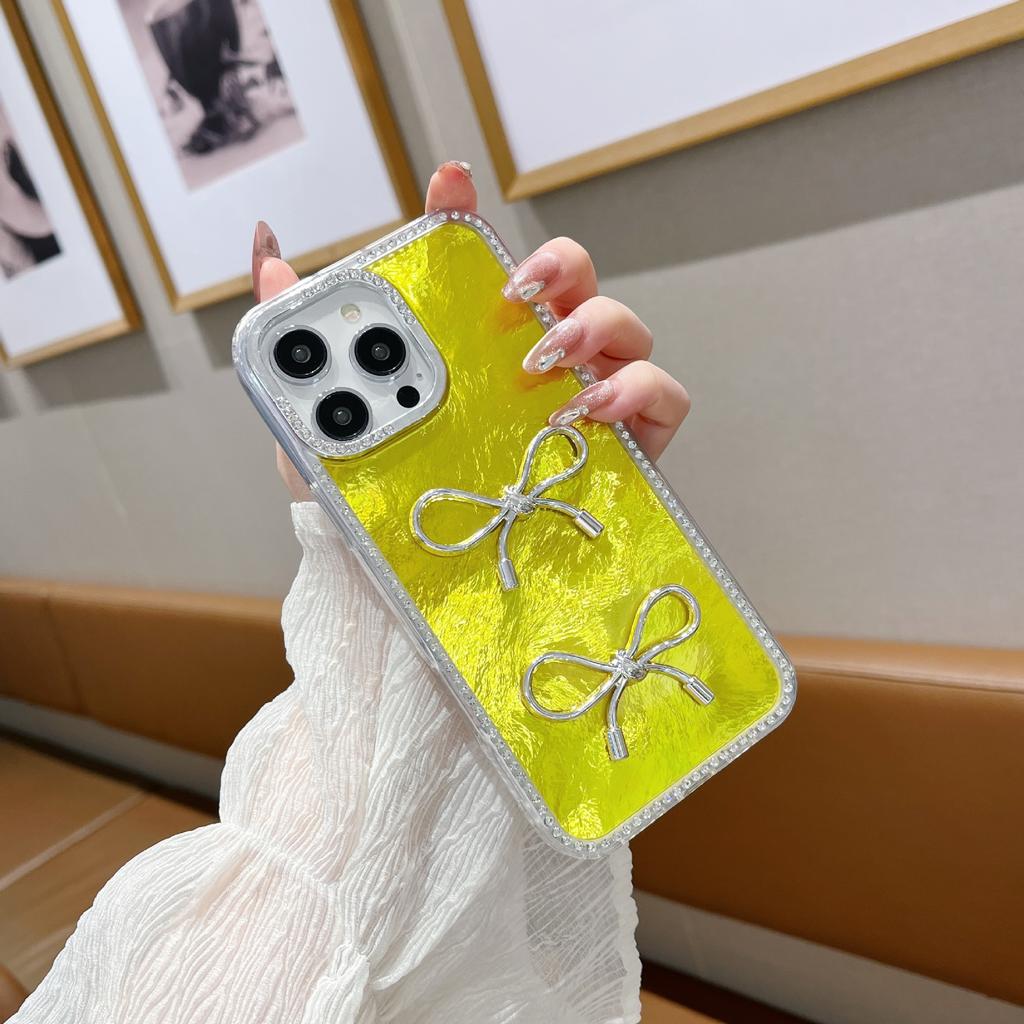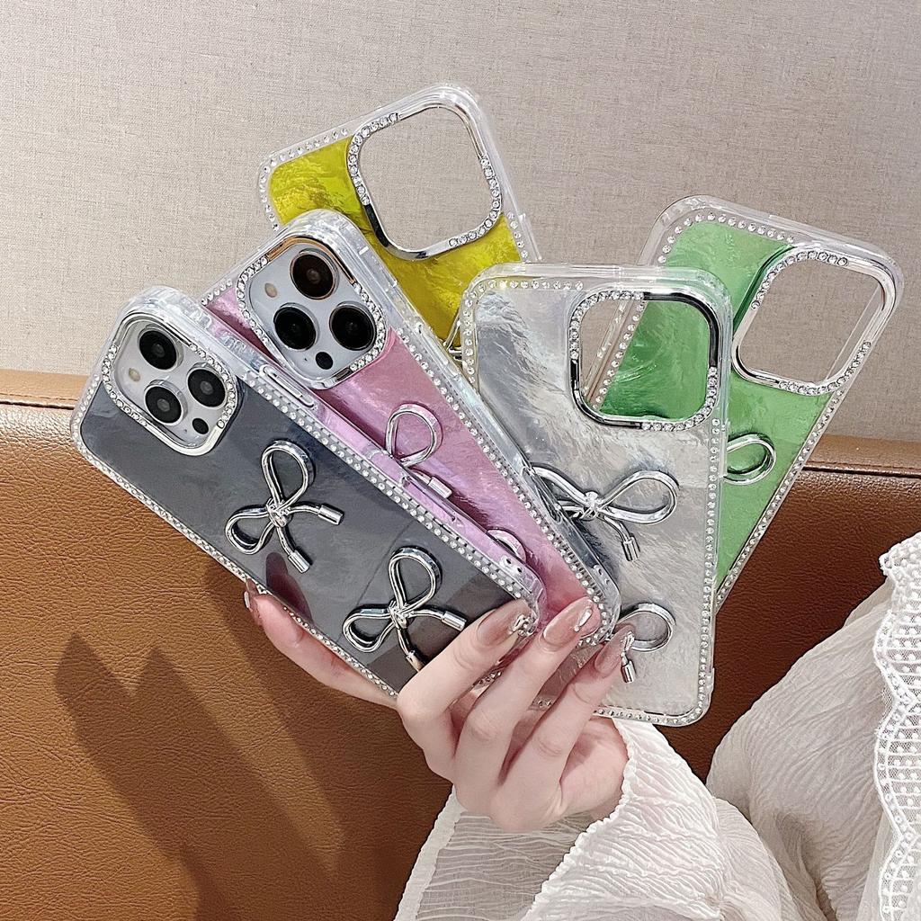 Подходит для iPhone16proMax Лазерный Перьевой Бант Чехол для Мобильного Телефона Apple 15 Блестящая Пудра Бриллиант Противоударный Защитный Чехол