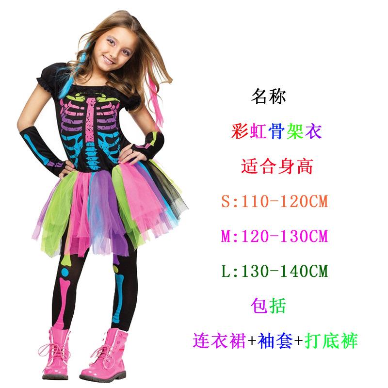 Хэллоуин Маскарадный Костюм Зомби, Костюм на Хэллоуин Детский Радужный Череп Скелет Костюм Призрака
