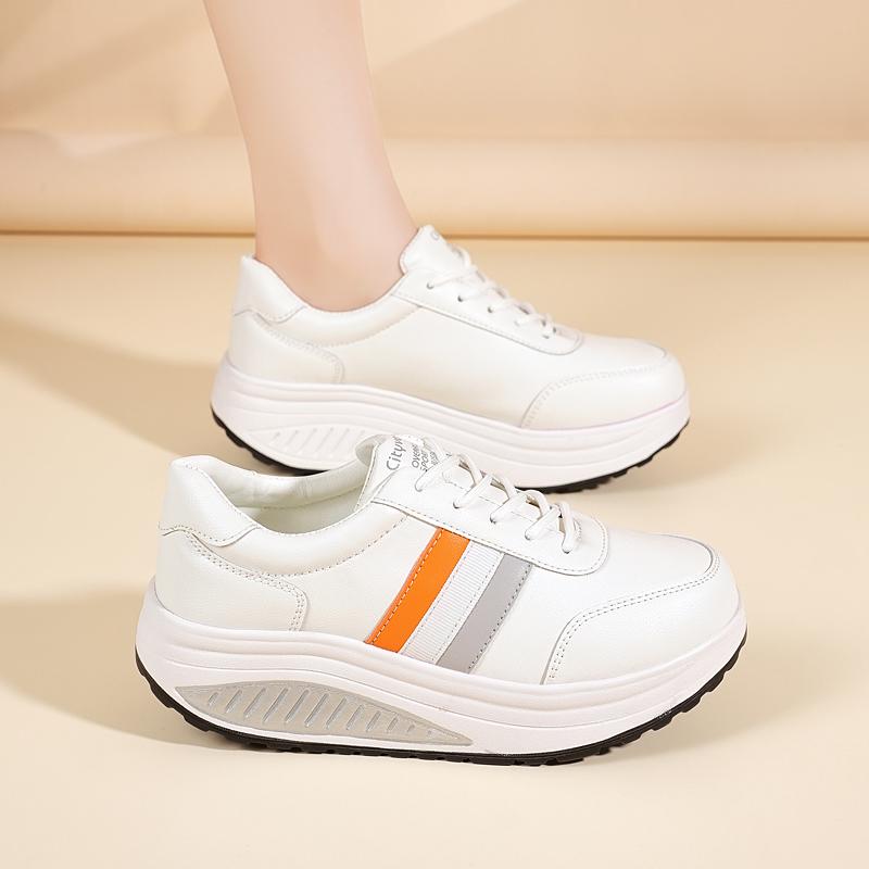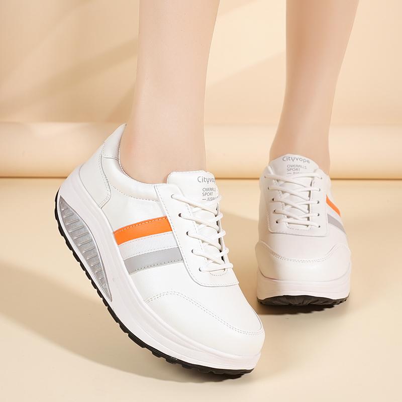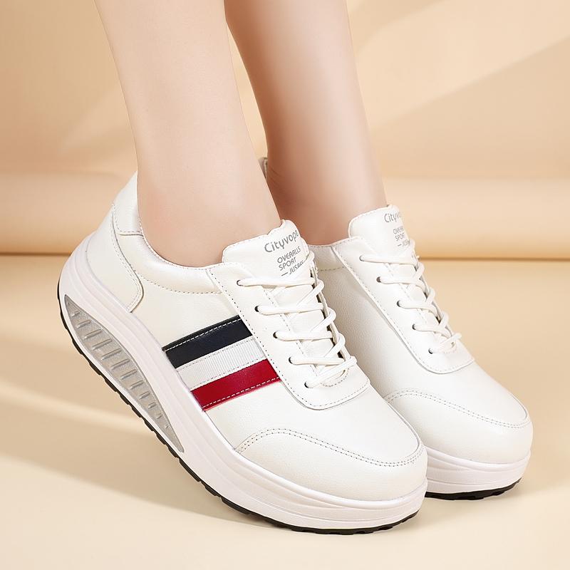Женские лоферы кроссовки увеличение роста белая кожа платформа повседневные толстая подошва обувь на лифте тряска