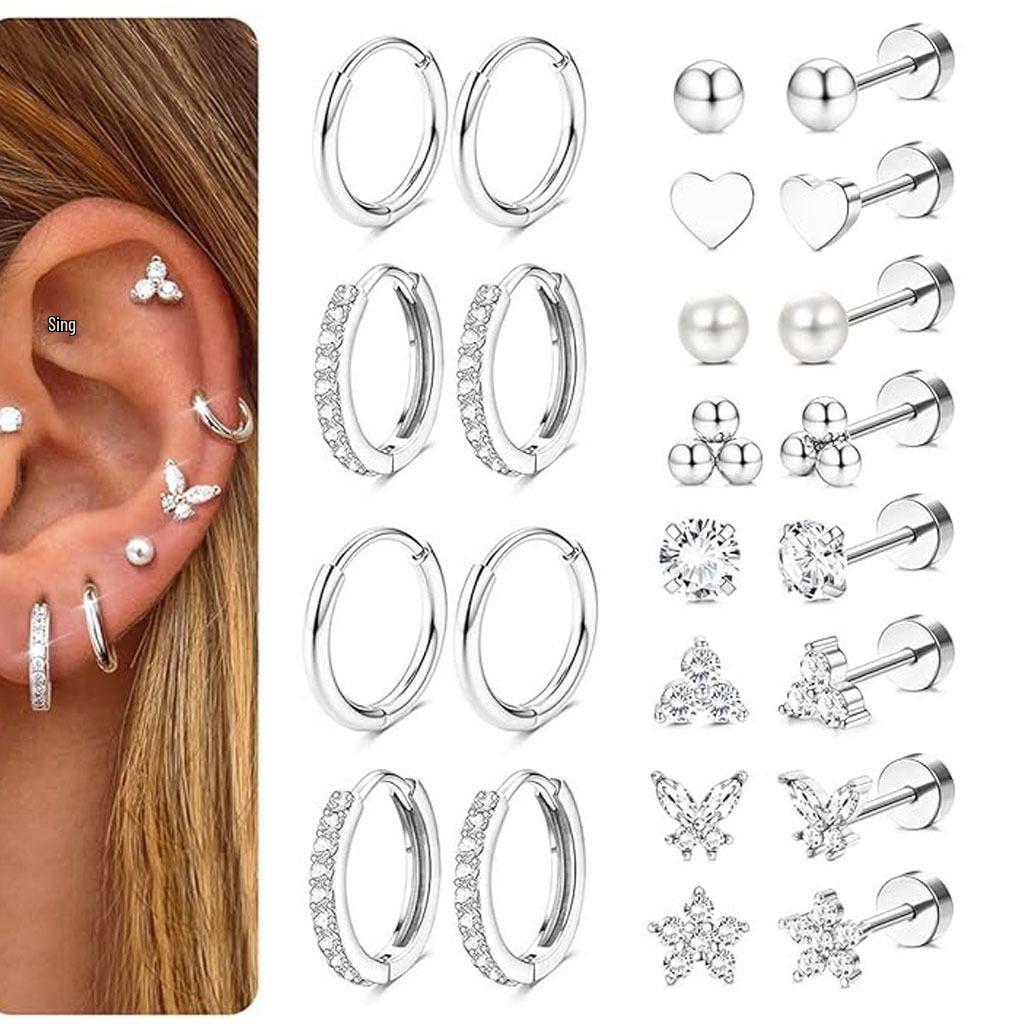 Набор серег-пусет из латуни с золотым покрытием в виде сердца и листьев с цирконами