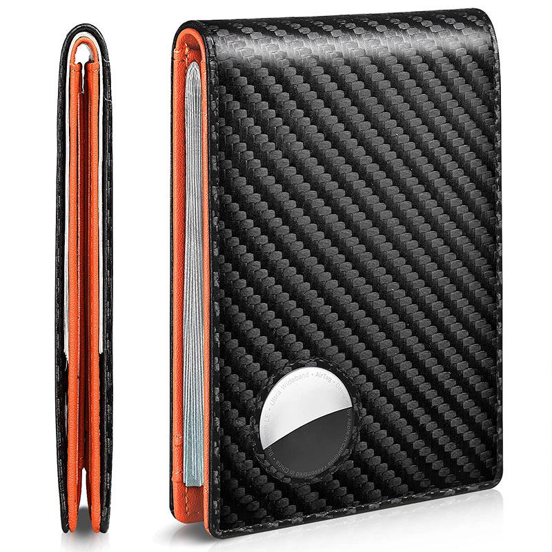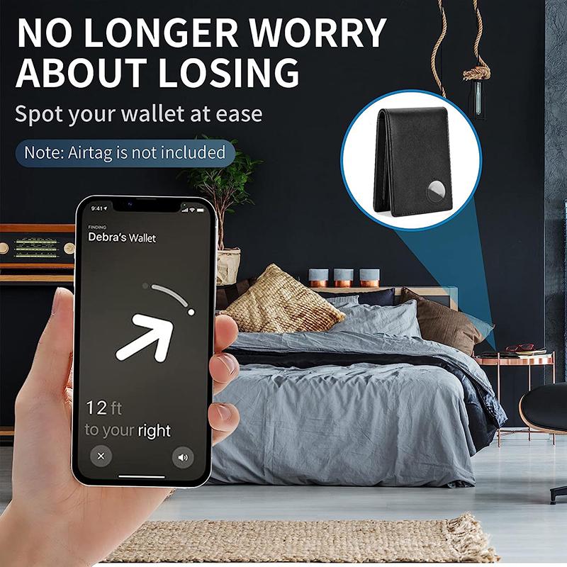 Мужской RFID кошелек с защитой от кражи, с несколькими отделениями и держателем для карты AirTag