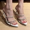 [В наличии] Новые сандалии на высоком каблуке со стразами из драгоценных камней, женские, на тонком каблуке, с открытым носком, с острым носком, нишевые, темпераментные шлепанцы для улицы