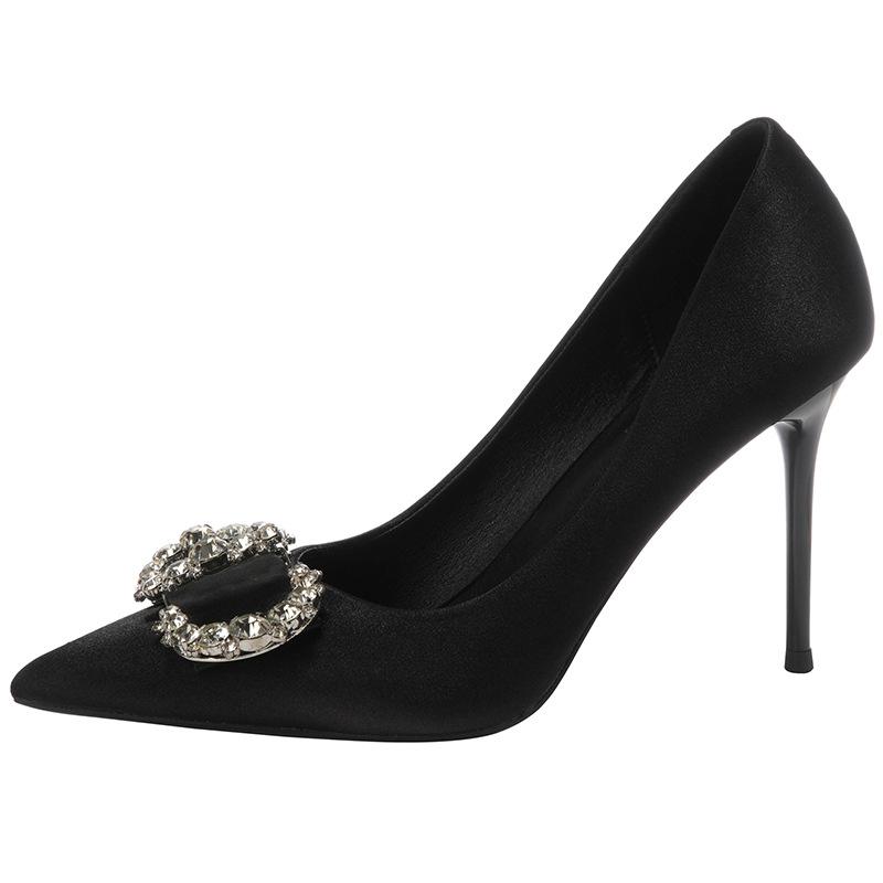 [Spot] Rhinestone pointed black French stiletto sexy European and American high heels women's 2025 new spring shoes