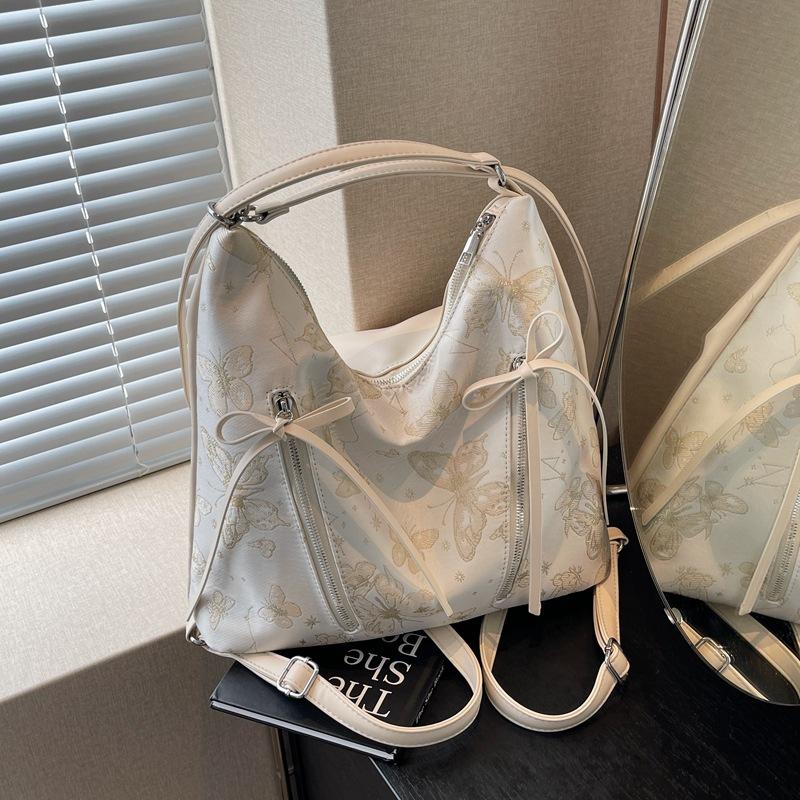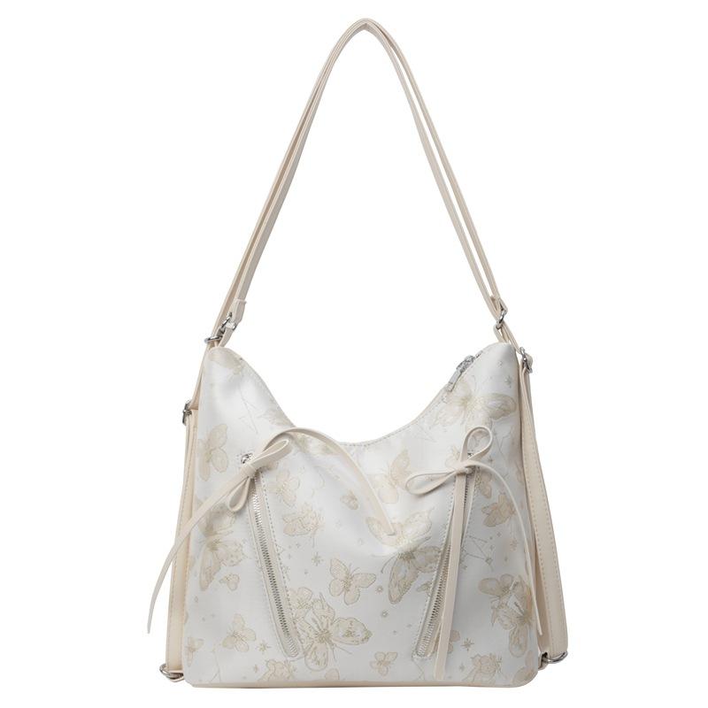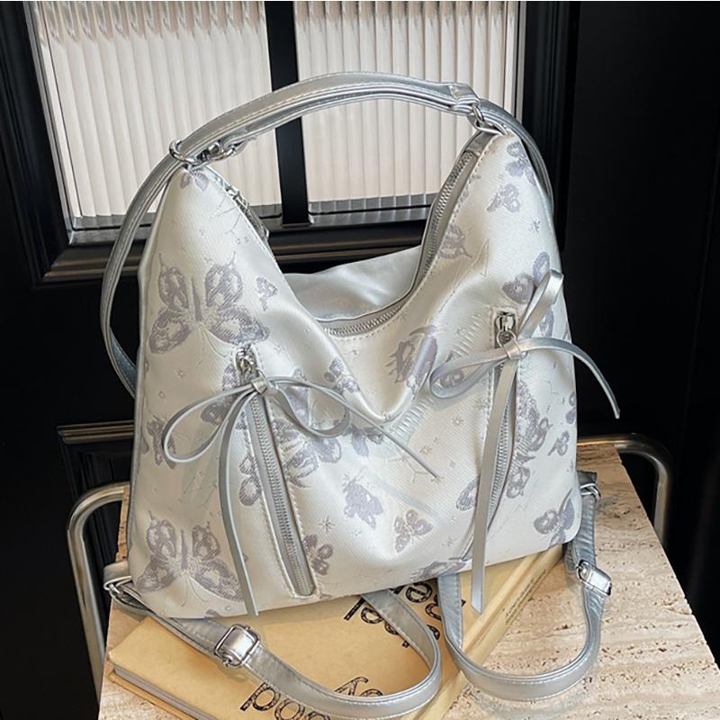 - **Детали структурированной сумки-трансформера**: Имеет стильный структурированный силуэт хобо из ПУ материала, принт с бабочками, деталь с кулиской и универсальные варианты ношения. (одноплечевой, рюкзак), излучающий бохо и непринужденный шарм. Несколько вариантов цвета (Серебристый, Белый) удовлетворять разнообразным стилевым предпочтениям.