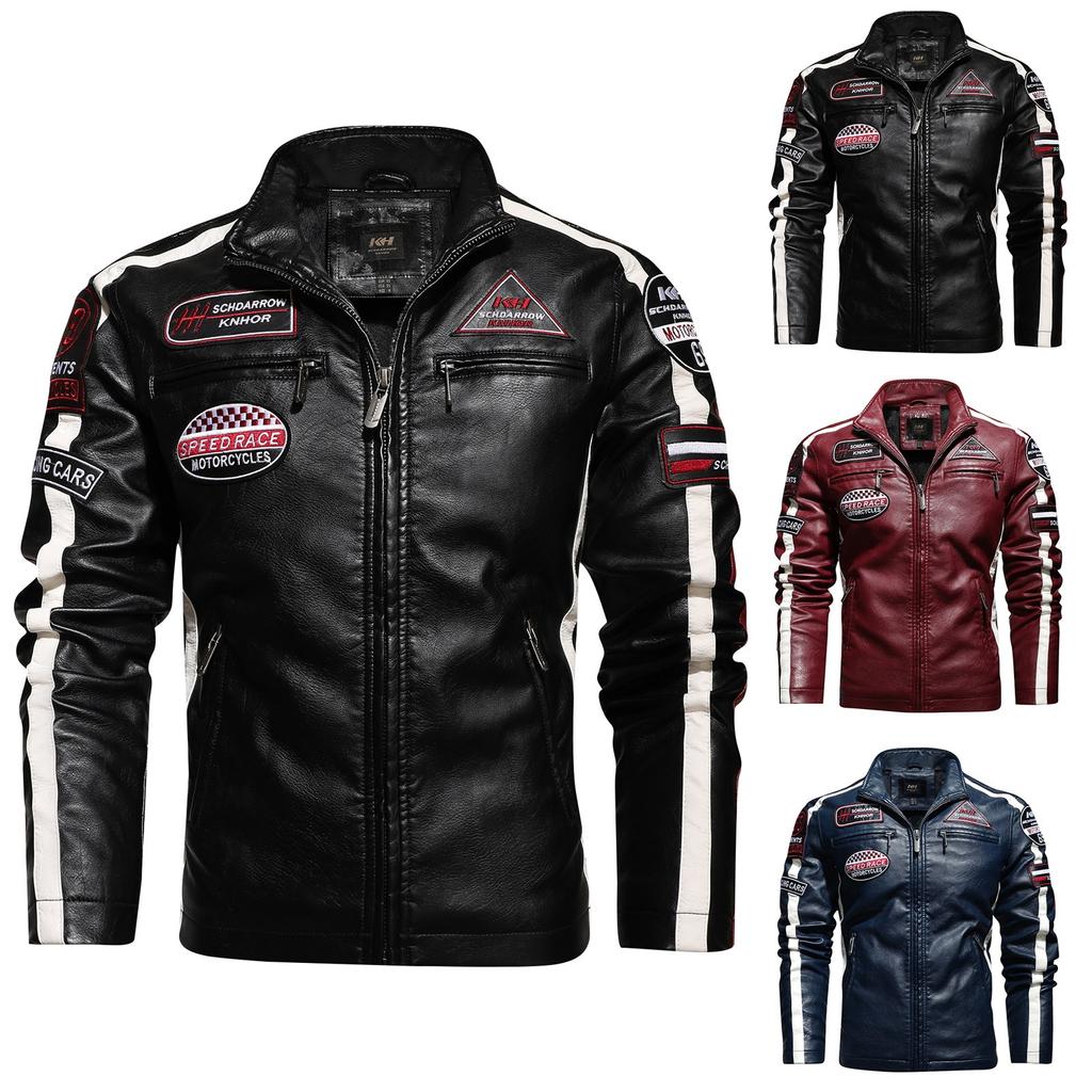 Кожаные мужские осенние и зимние мотоциклетные куртки с вышивкой, мужские кожаные куртки
