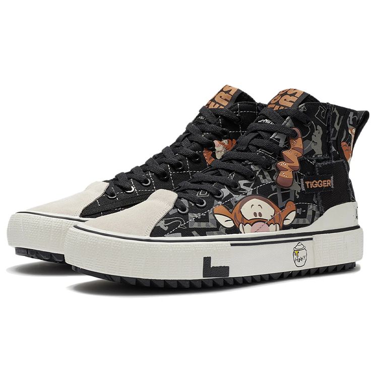 Disney X Li Ning Tigger Classic Casual High-Top Sneakers Мужские кроссовки Черный Белый AGCS333-1