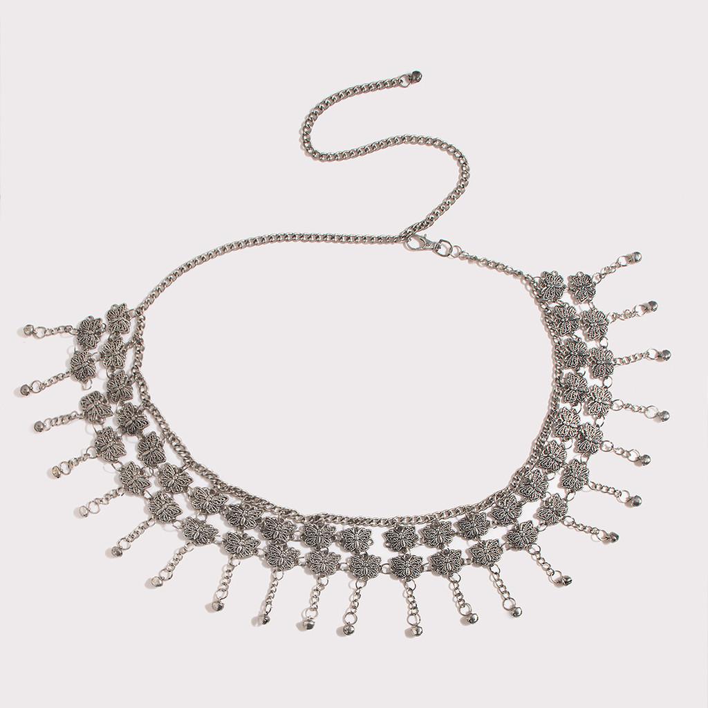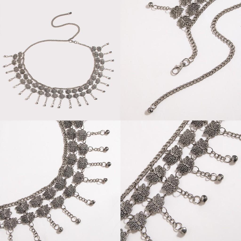 This handcrafted silver belly chain features a vintage engraved butterfly design, crafted from durable metal, it supports casual and festival wear for women. Ideal for summer, winter, spring, and fall, it enhances bohemian or ethnic styles. Wipe clean with a soft cloth for maintenance.