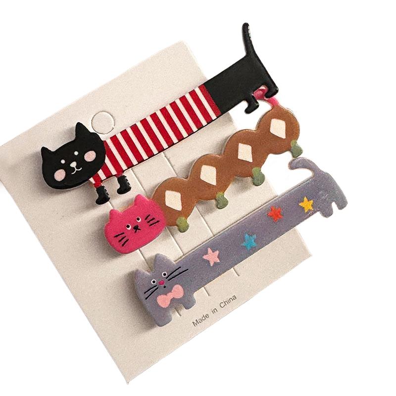 Мультфильм дизайн: Украшенная милым кошачьим мотивом, эта живая и энергичная заколка придает игривое и модное ощущение, сочетая декоративные и практичные функции.