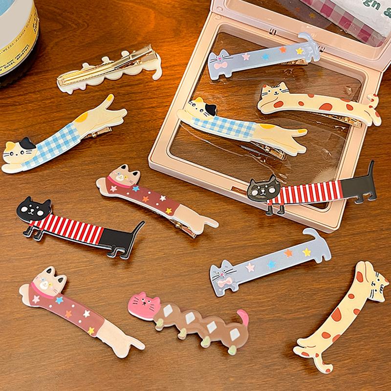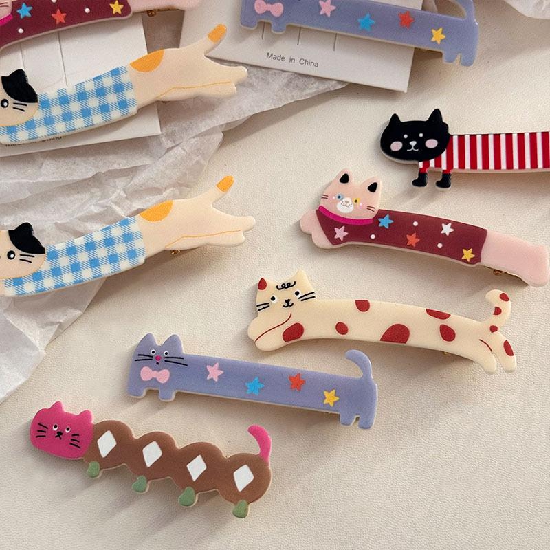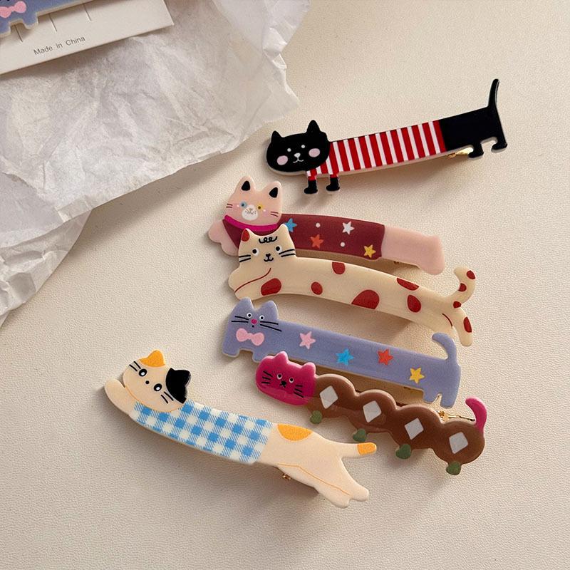 Маленькая заколка для волос может быть умным способом оживить любой образ.. Эта длинная мультяшная заколка для волос в виде кошки сочетает в себе милый дизайн кошки с практичной функциональностью, фиксируя выбившиеся волосы и челку и добавляя игривый штрих к любому образу.. Изготовлен из легкого и прочного материала, оснащен надежным, долговечным зажимом, который не ослабевает, что делает его удобным и бережным к волосам.. Удлиненный дизайн повторяет форму головы, легко фиксирует волосы и делает ежедневный уход простым и удобным.. Разнообразие стилей предлагает широкий выбор вариантов, от милых и очаровательных кошачьих дизайнов до простых и ярких цветовых сочетаний, на любой вкус.. Будь вы студенткой, идущей в школу, или молодой девушкой на свидании, заколка для волос в виде кошки добавит вашему наряду уникальный штрих милоты.. Это также прекрасный подарок, идеальный для друзей, одноклассников или детей, выражающий вашу заботу и беспокойство.. Пусть эта мультяшная заколка для волос в виде кошки сопровождает вас в вашей повседневной жизни, добавляя нотку тепла и красоты.