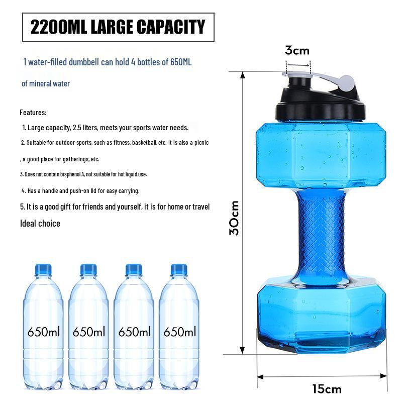 Бутылка-гантель - Большая вместимость, Портативный чайник для фитнеса на открытом воздухе и тяжелой атлетики