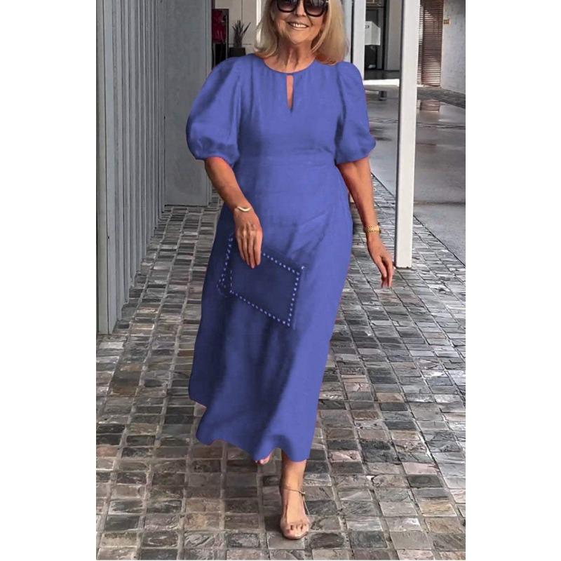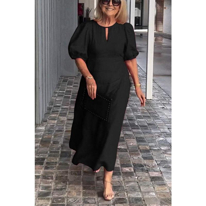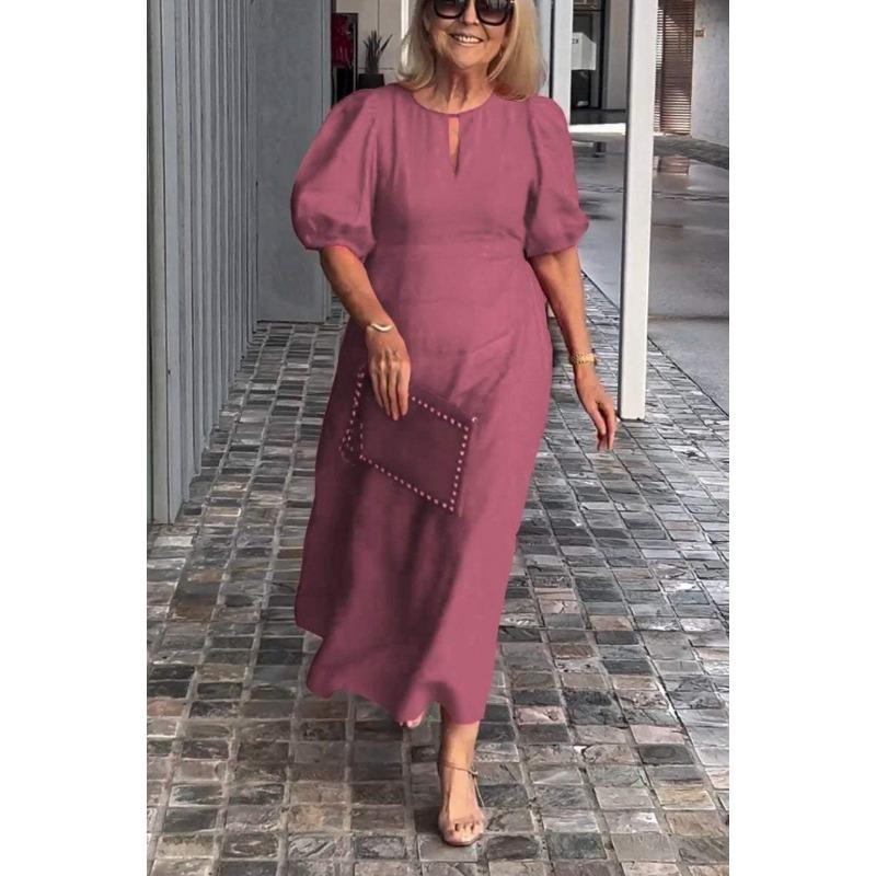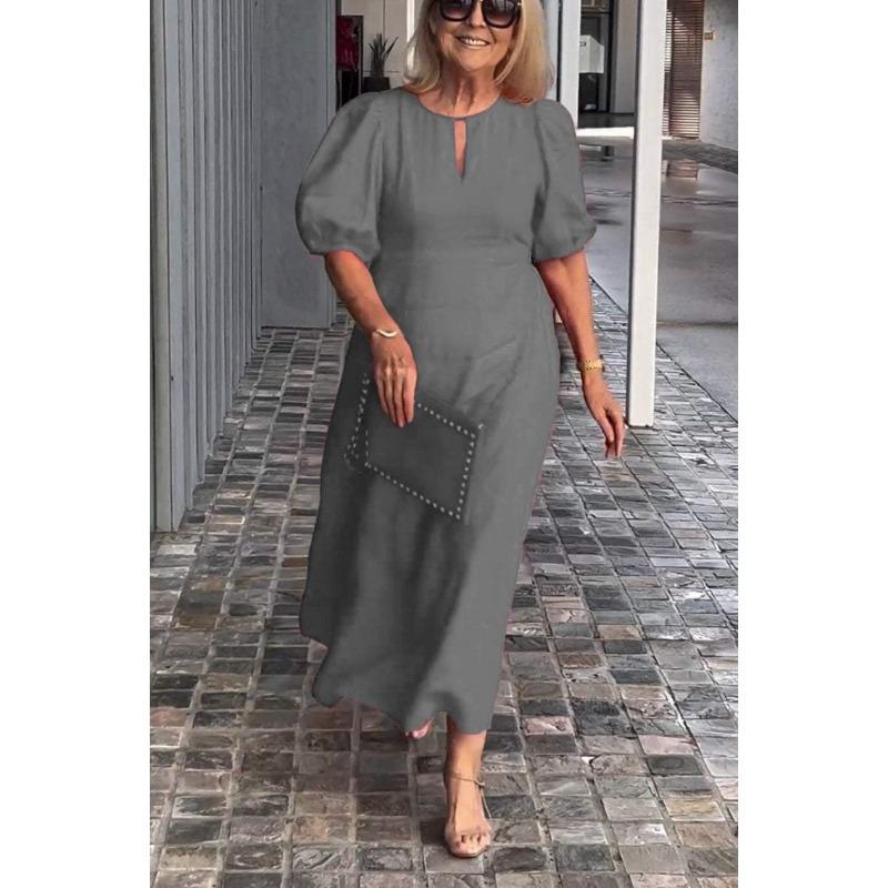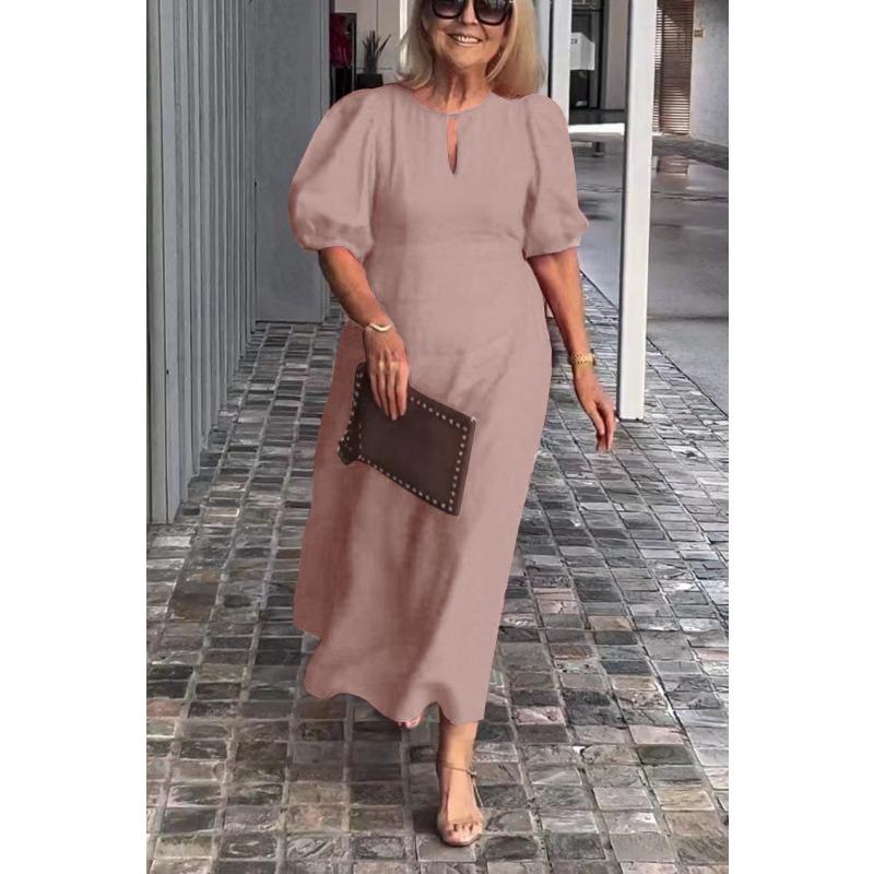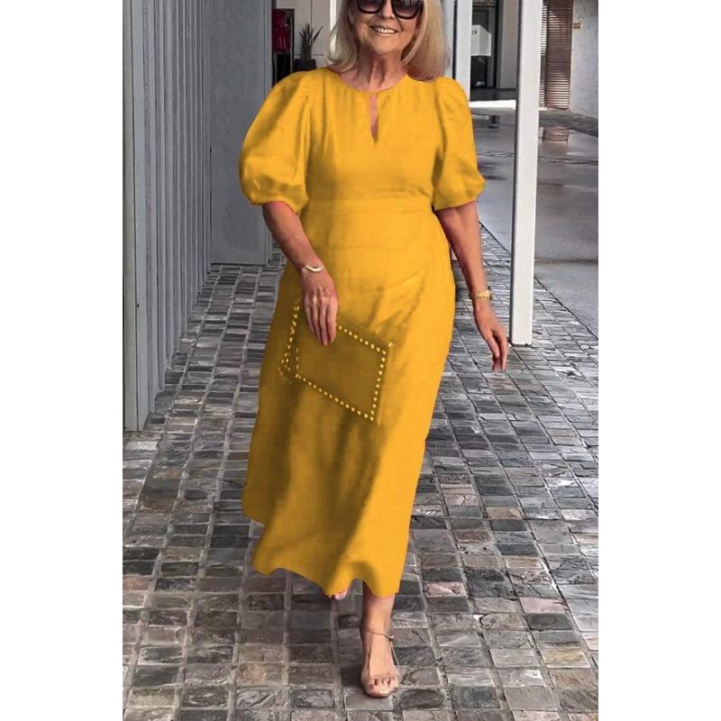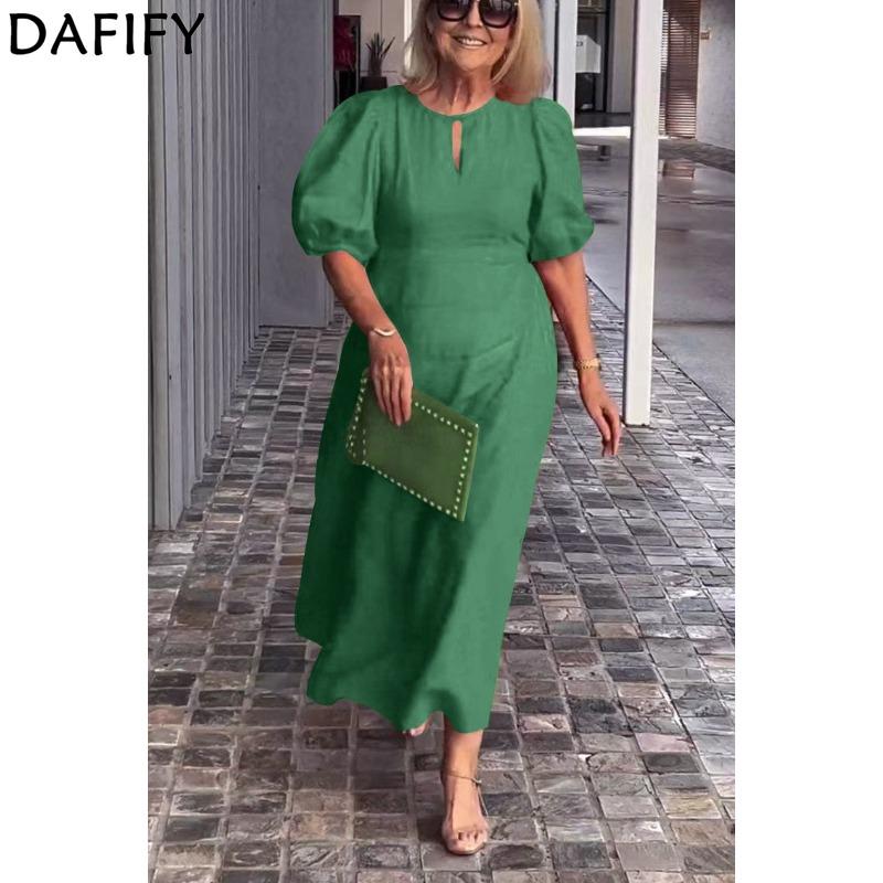 DAFIFY Женская мода лето весна однотонный принт с коротким рукавом и круглым вырезом с высокой талией повседневные платья
