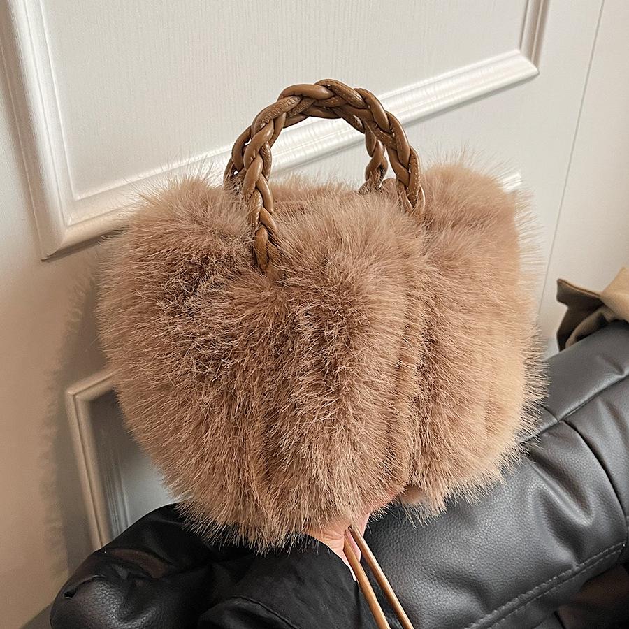 - **Детали структурированной сумки-трансформера**: Представляет собой стильную структурированную плюшевую сумку силуэта мешка с плетеной ручкой, мягким плюшевым материалом и универсальными вариантами ношения. (ручной, на одно плечо, через плечо), излучая милый и уютный шарм. Несколько вариантов цвета (Белый, Хаки, Розовый, Бежевый) удовлетворять разнообразным стилевым предпочтениям.