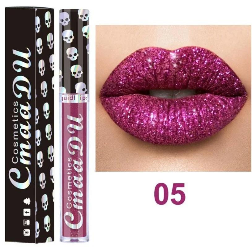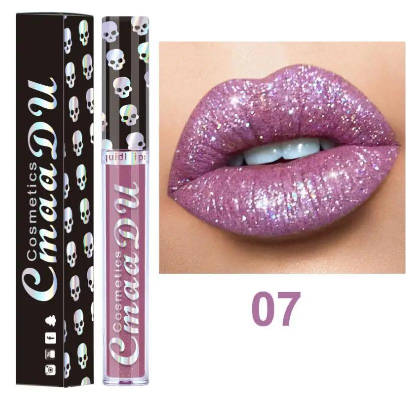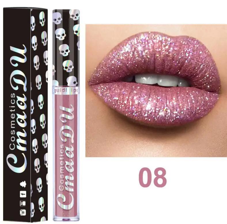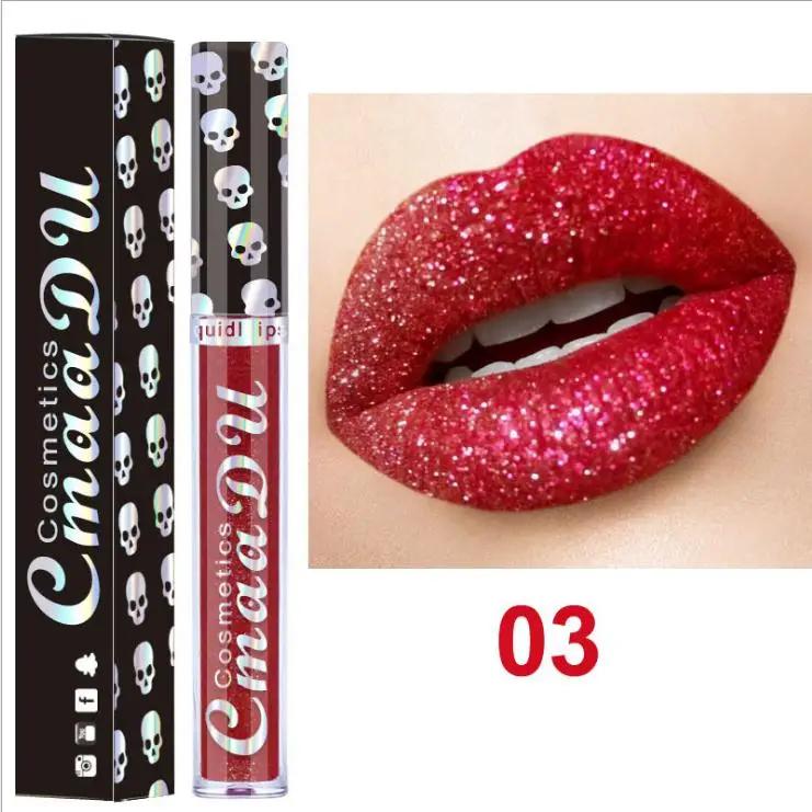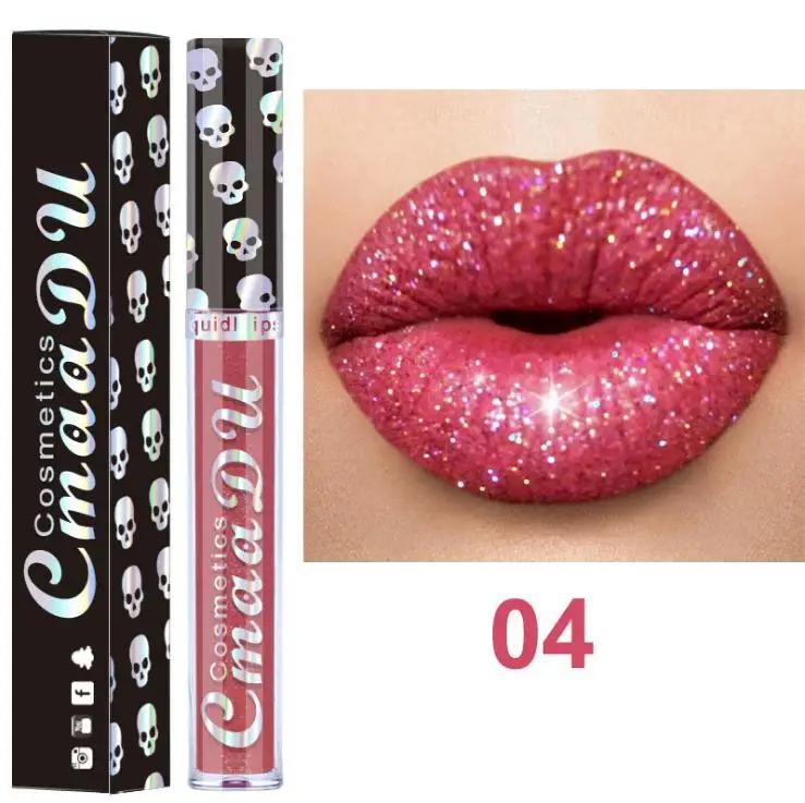 Блеск для губ с глиттером Лазерный череп Бриллиантовая симфония Блеск для губ Сияющий металлический блеск для губ Водостойкая помада Красота Макияж