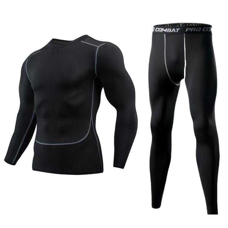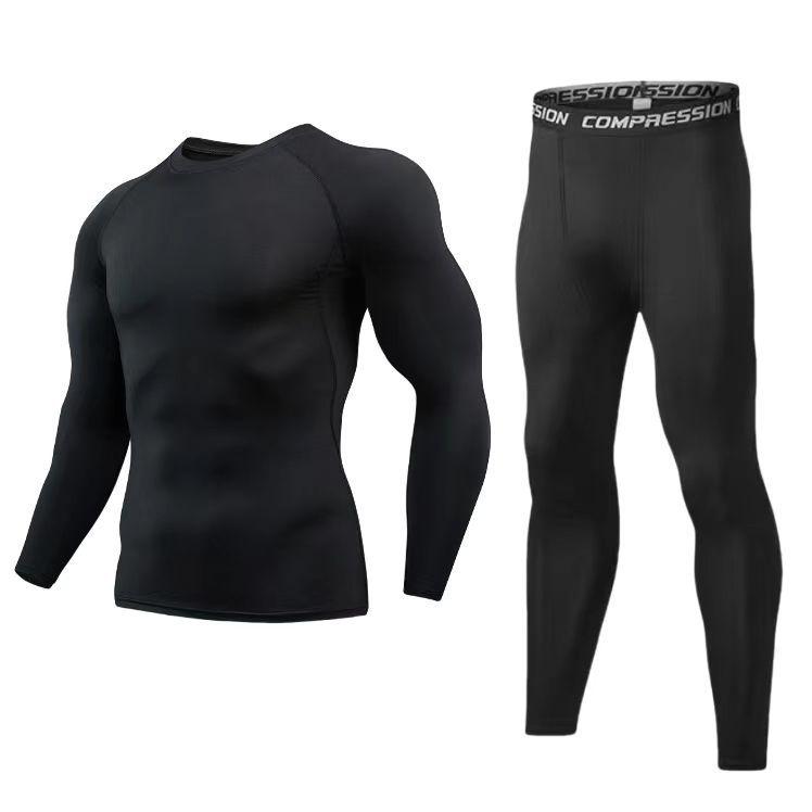 Мужской быстросохнущий дышащий комплект спортивной одежды - Облегающий базовый слой с длинным рукавом для бега и тренировок на открытом воздухе.