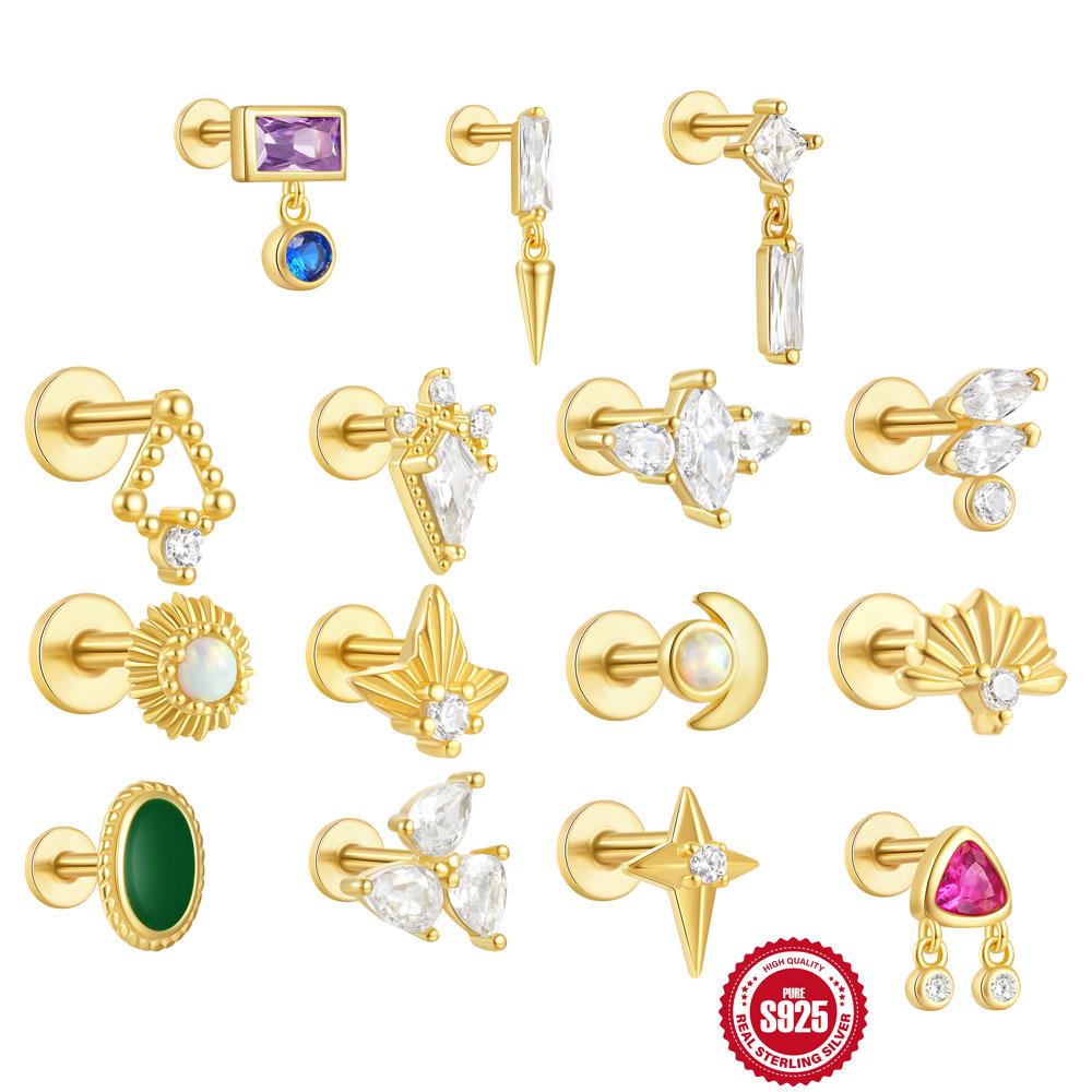 Серьги-пусеты из стерлингового серебра 925 пробы, в форме капли, треугольника, с гранатом и опалом