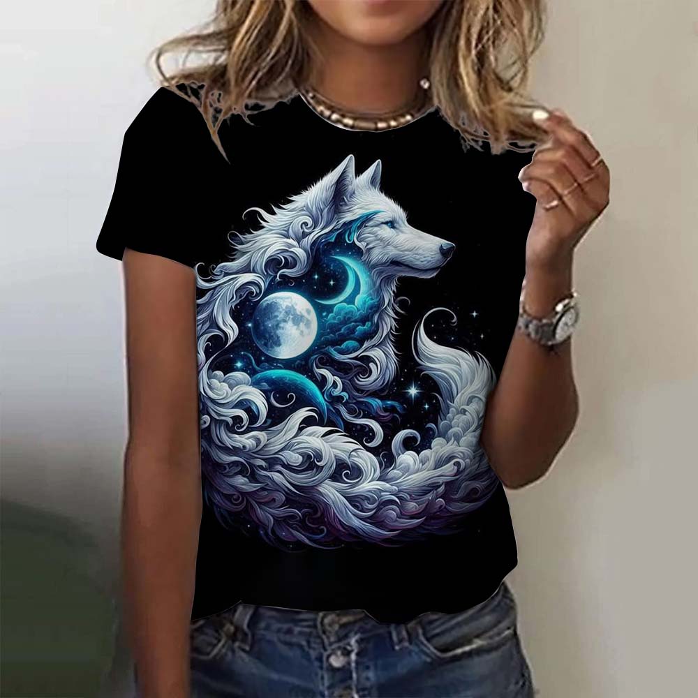 Женские футболки с 3D-принтом с волчьим узором, летние новые футболки Харадзюку, топы Y2k, свободные, с короткими рукавами, одежда для девочек