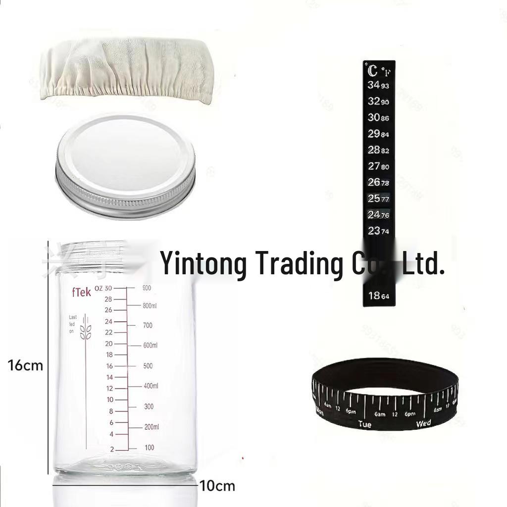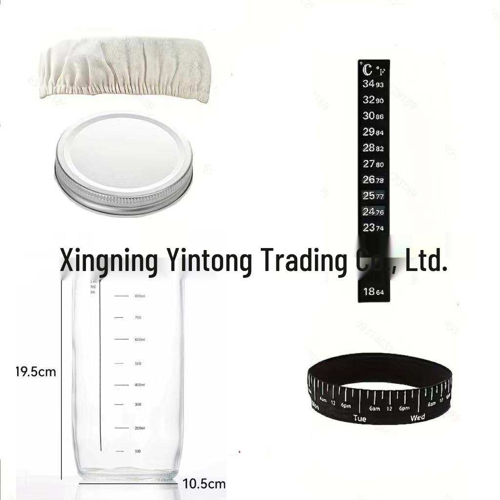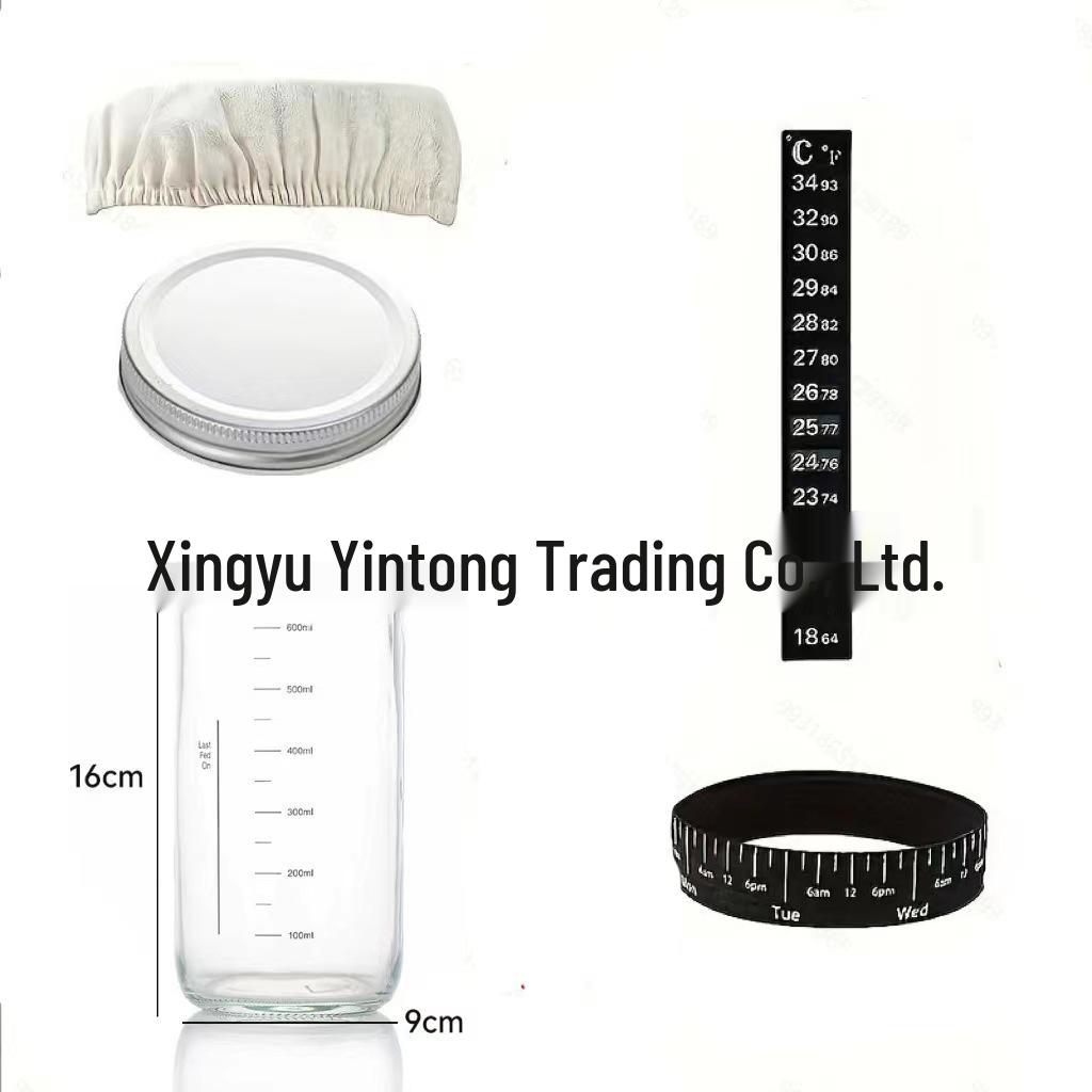 Стеклянная банка для ферментации закваски объемом 24 унции (700 мл) с термометром и крышкой для выпечки хлеба.