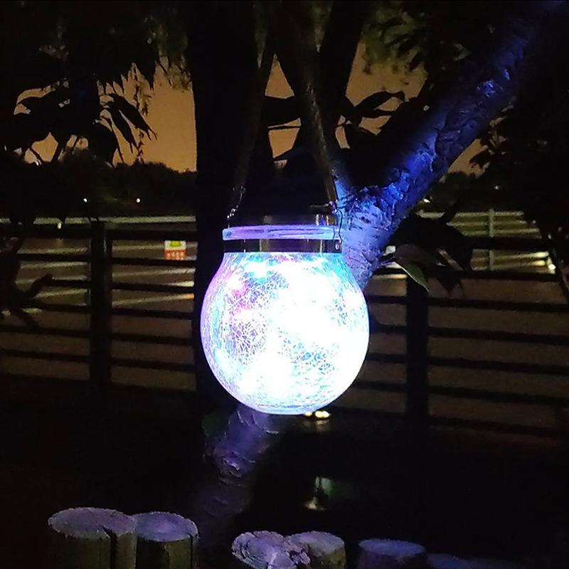 Солнечный светодиодный светильник из потрескавшегося стекла для наружного сада, газона, дерева и подвесных украшений для забора