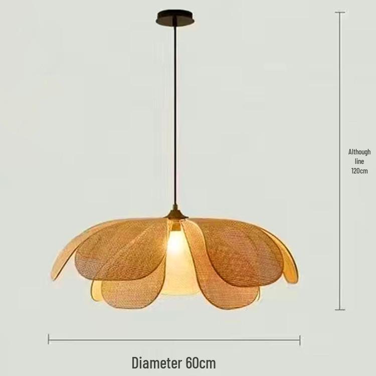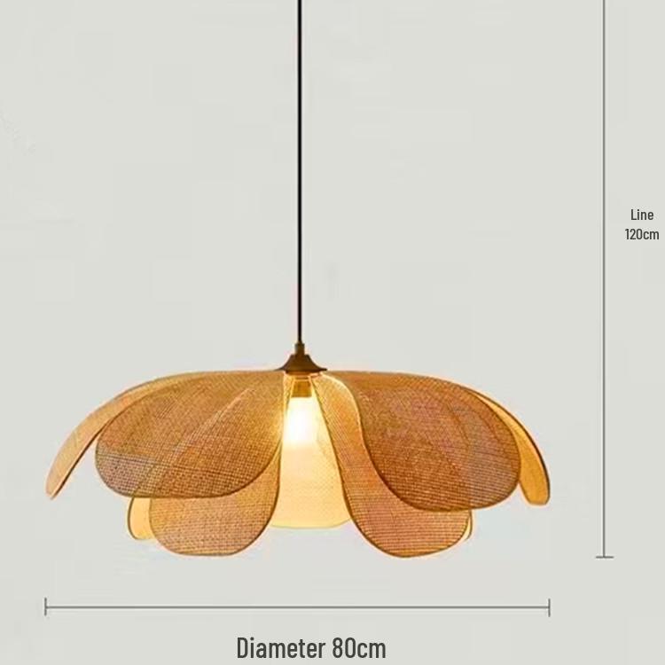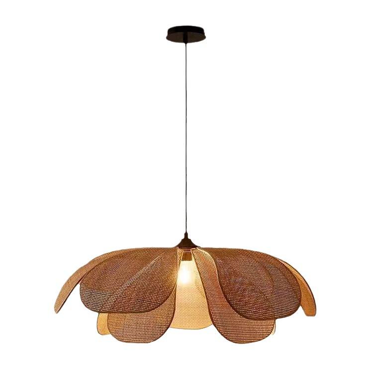 Лампа-лепесток из ротанга ручной работы: Люстра Ваби-Саби для спальни, чайной комнаты или ресторана.