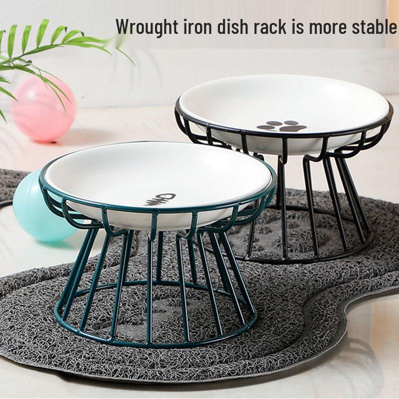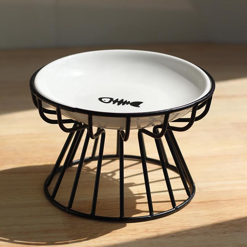 Скандинавская керамическая миска для кошек на высокой ножке с железной подставкой - Конструкция против опрокидывания для защиты шейного отдела позвоночника