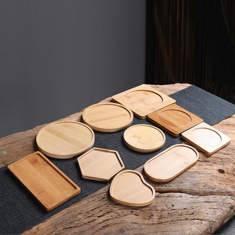 Бамбуковые подставки для чая, многоформенный бамбуковый поднос, подставки для хранения цветочных горшков, кухонная посуда для украшения, креативные подставки для кофе