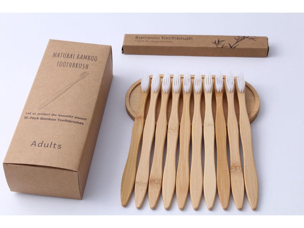 Набор из 10 бамбуковых зубных щеток с мягкой щетиной для взрослых - Идеально для дома, отеля или B&B, Возможна индивидуальная маркировка