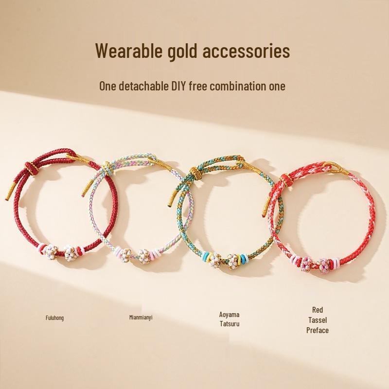 Браслет из красной веревки с цветком персика: Сделай сам из бусин или носи с золотом - Идеальный женский подарок на День святого Валентина