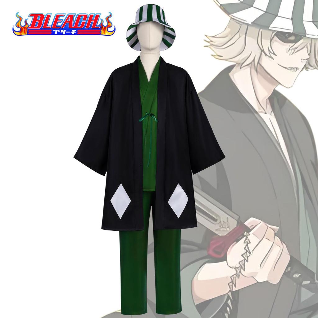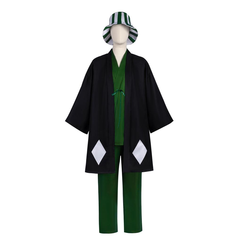 Аниме Блич Косплей Урахара Киске Готей 13 Костюм Кимоно Униформа Накидка Топ Брюки Шляпа Полный Костюм Для Костюма на Хэллоуин Для Взрослого