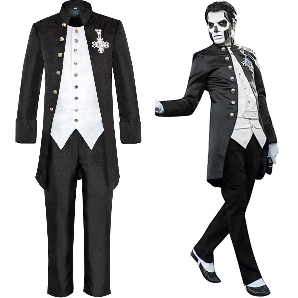 Аниме Череп Призрак Косплей Костюм Банд Кросс Брошь Костюм Хэллоуин Черный Смокинг Вампир Джентльменский Костюм Костюмы на Хэллоуин