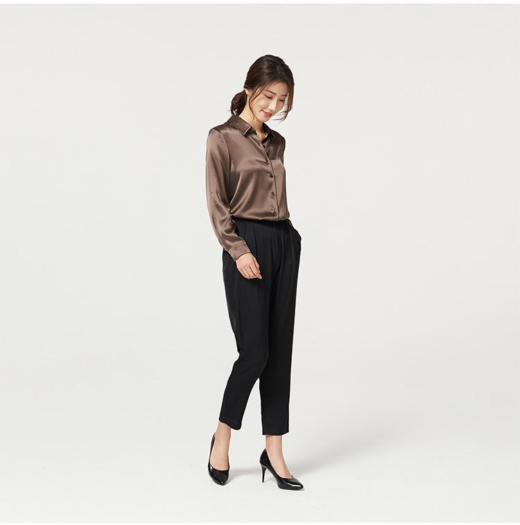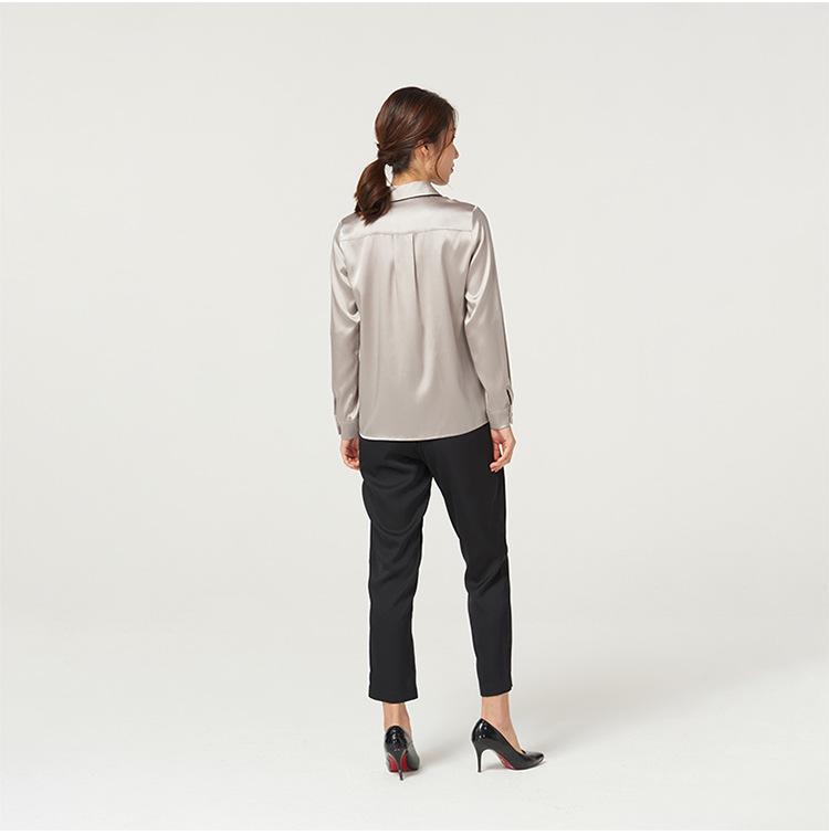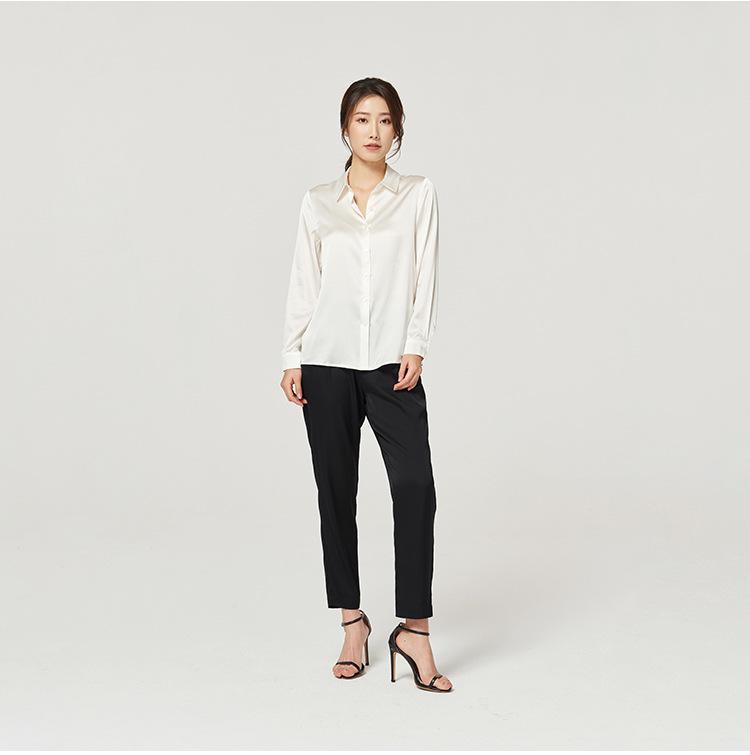 Женская блузка из натурального тутового шелка с длинным рукавом на весну 2025 года - Атласная, свободного кроя, для профессиональных поездок на работу