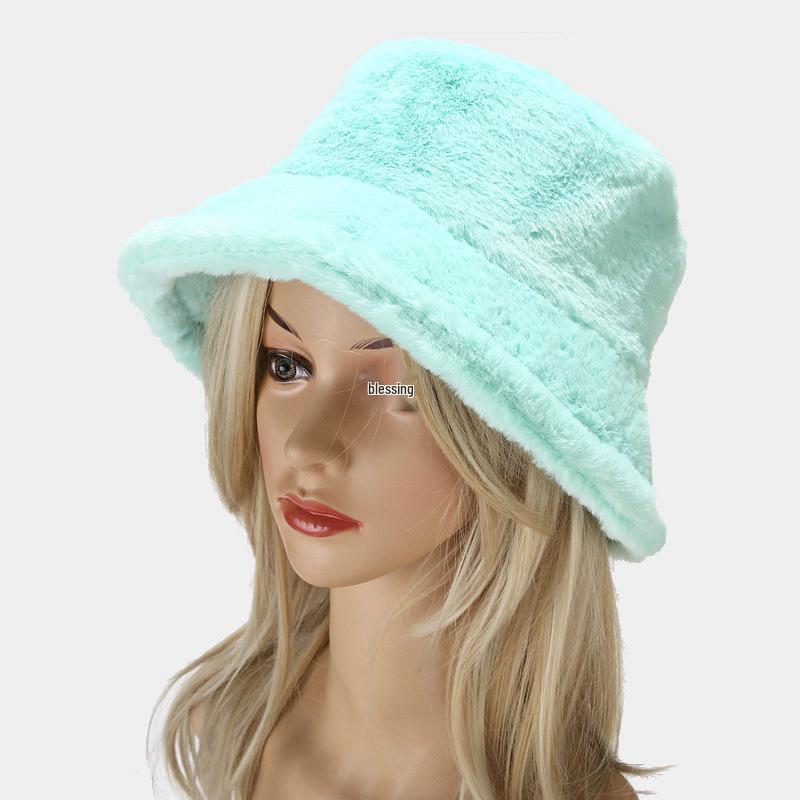 Минималистичная панама-ведро из искусственного кроличьего меха - Осенне-зимняя уличная теплая плюшевая модель