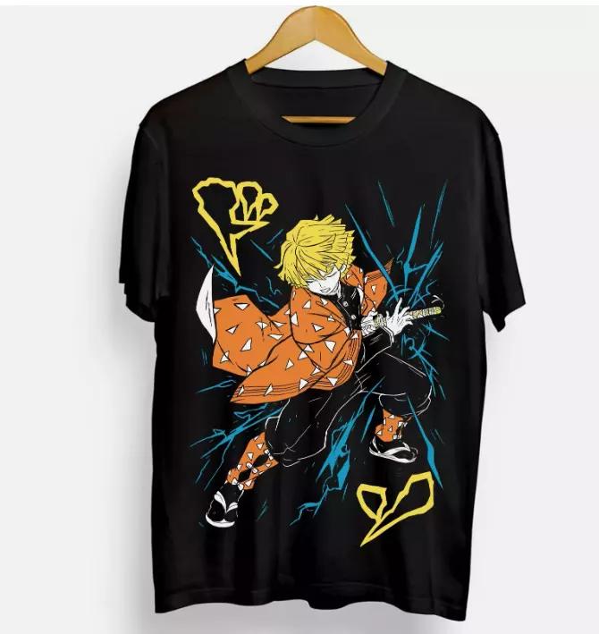 Футболка Гацума Зеницу Истребитель демонов Кимэцу но Яиба Аниме Мужская хлопковая футболка Лето Новинка Мужская и женская уличная одежда
