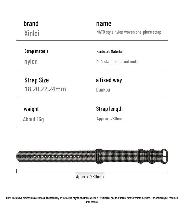Xinlei Утолщенный нейлоновый ремешок НАТО для часов - Универсальный плетеный холщовый ремешок 20/22 мм
