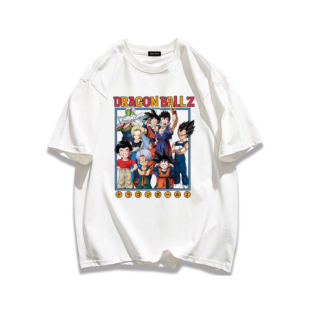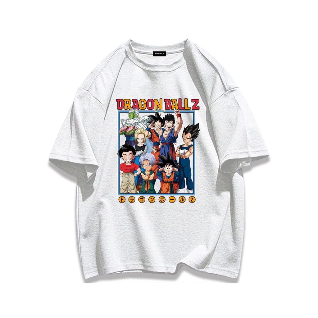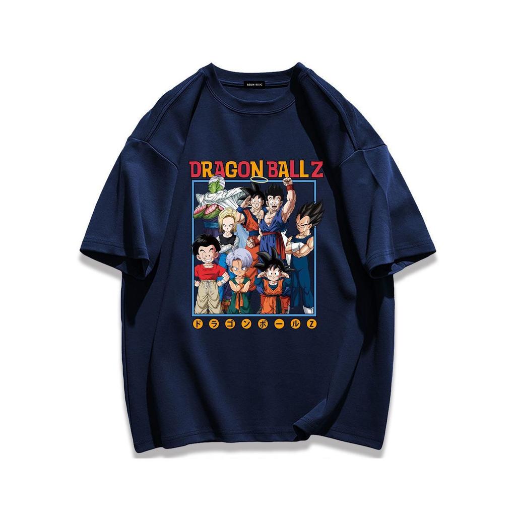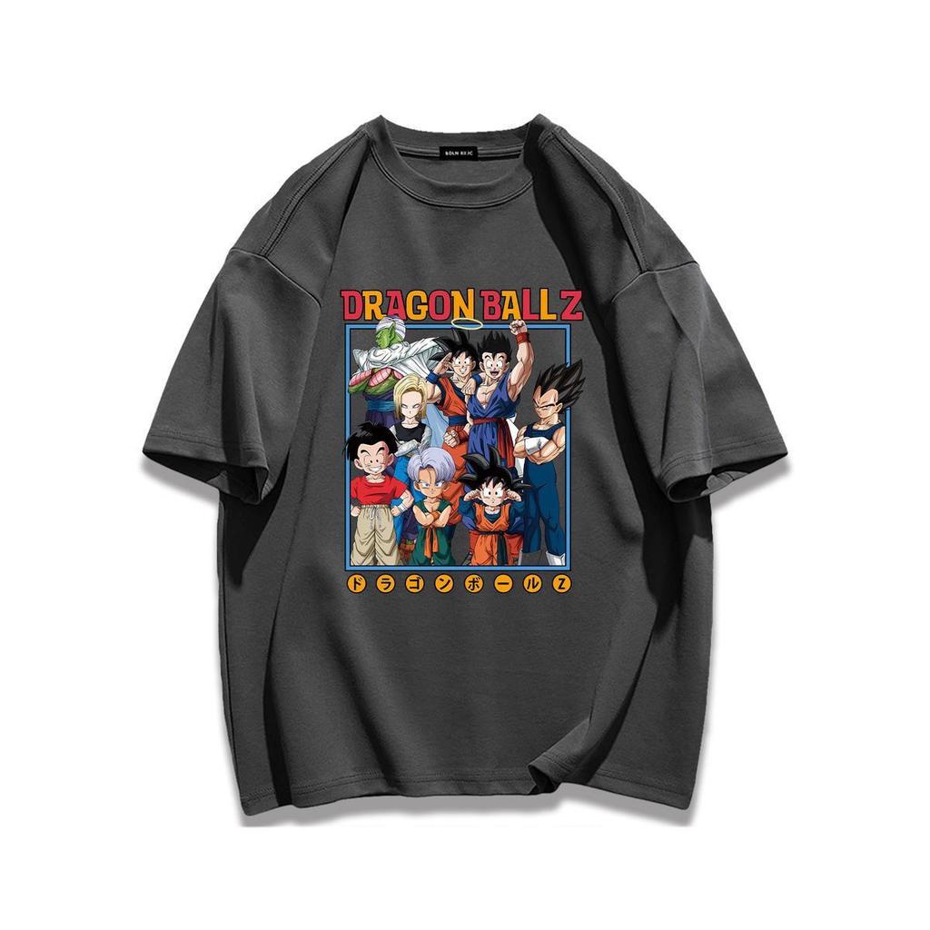 Тяжелый хлопок Уличная мультяшная футболка с коротким рукавом Dragon Ball Парная одежда Летний мужской и женский повседневный свободный топ