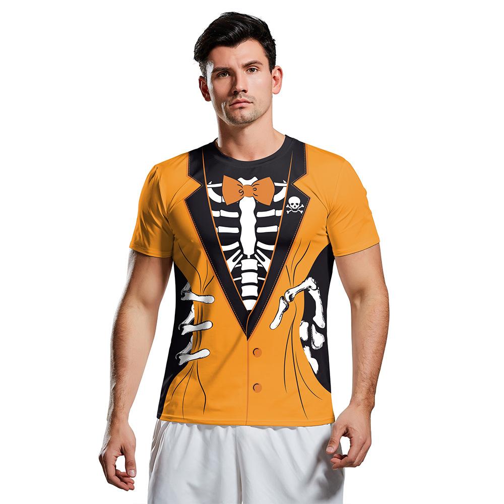 Летняя Новая Хэллоуин Скелет Цифровая Печать Большой Размер Футболка Короткий Рукав Платье для Пары