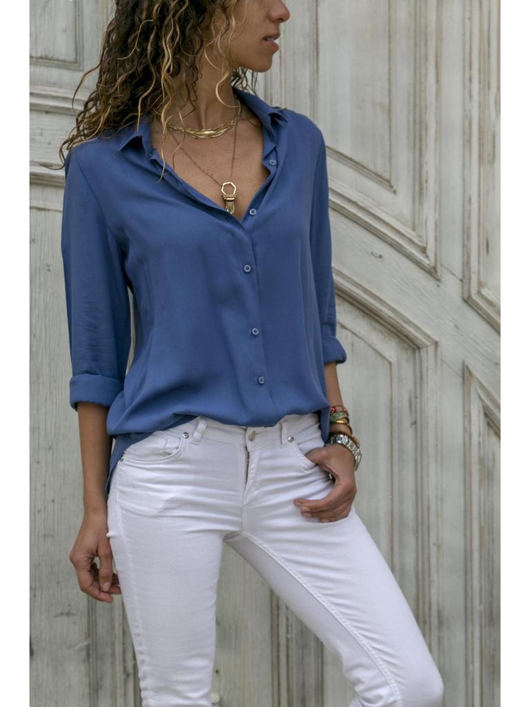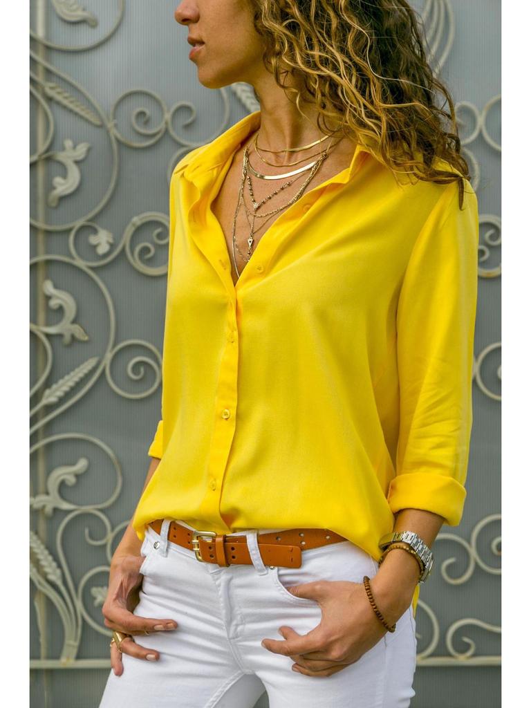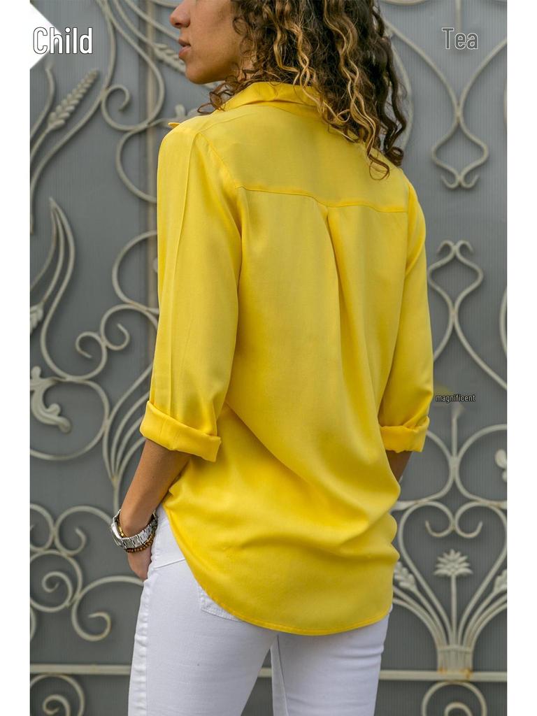 Женская приталенная профессиональная блузка с длинным рукавом - Деловой формальный летний топ
