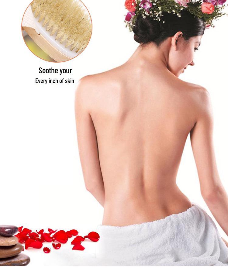 Портативная ручная щетка для ванны из щетины кабана - Круглая головка, скребок для спины для душа