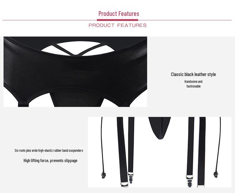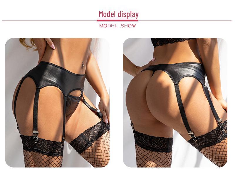 Классические черные кожаные женские регулируемые подвязки-трусики