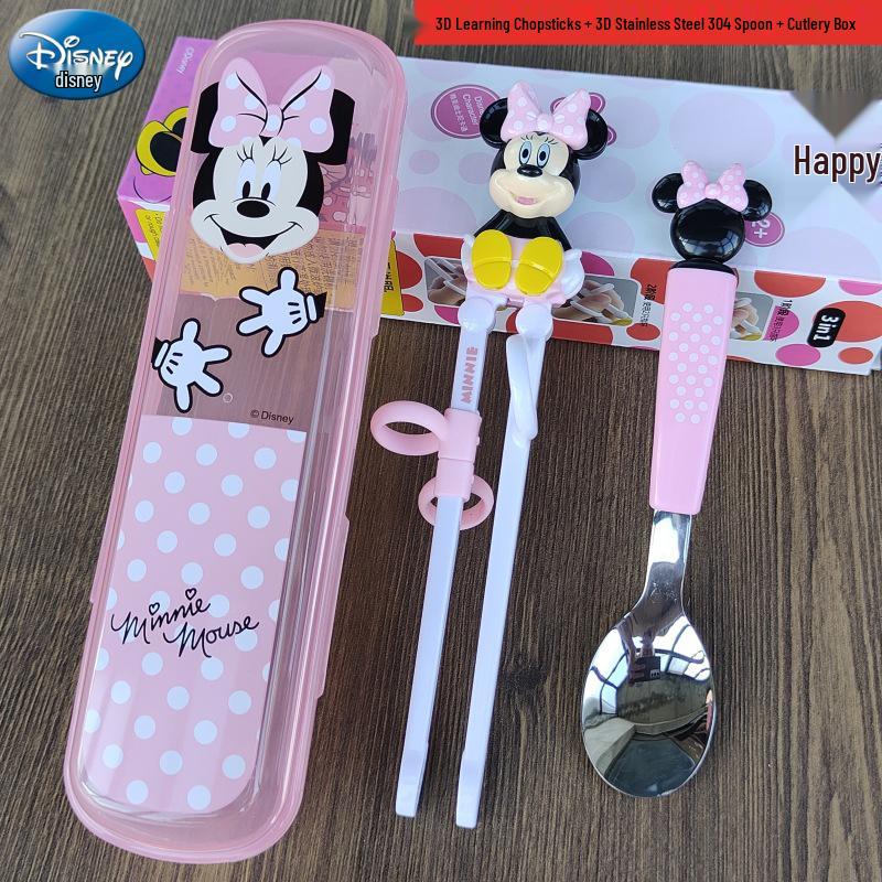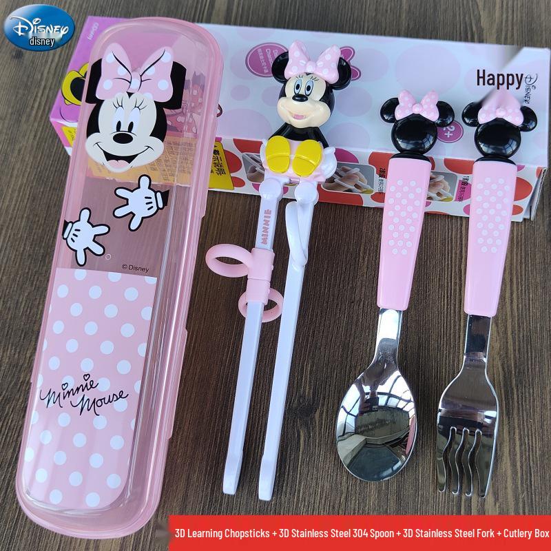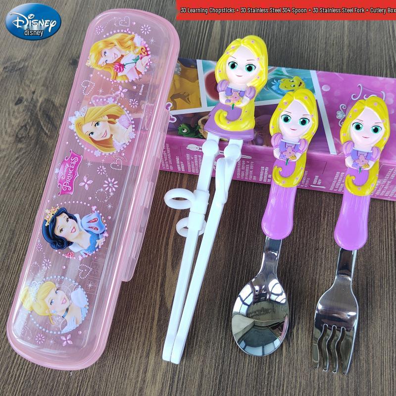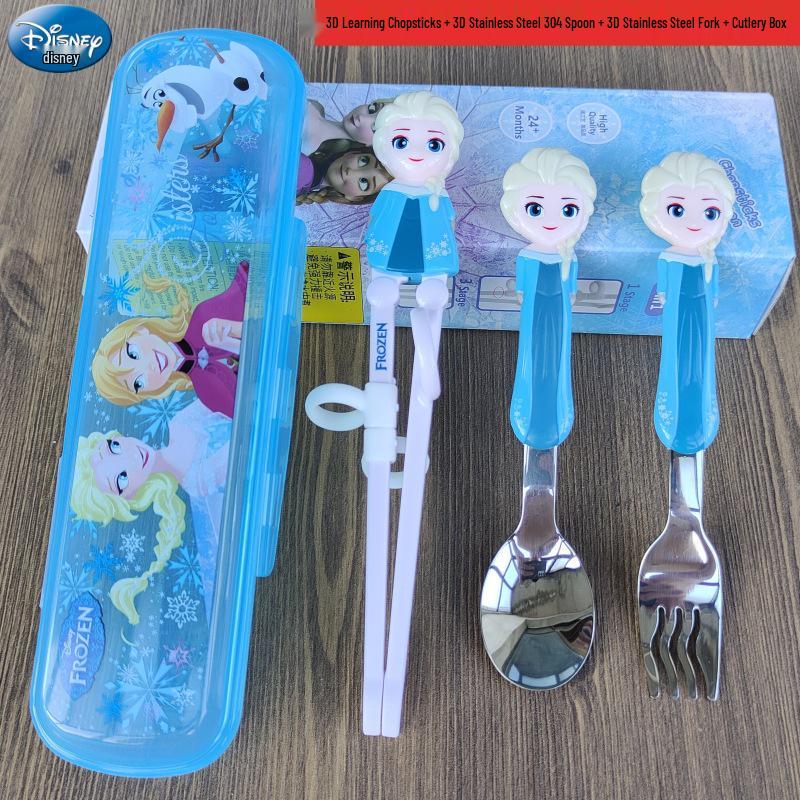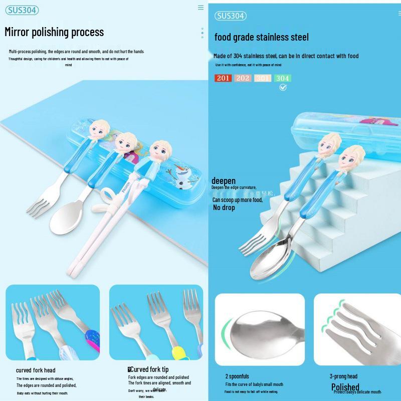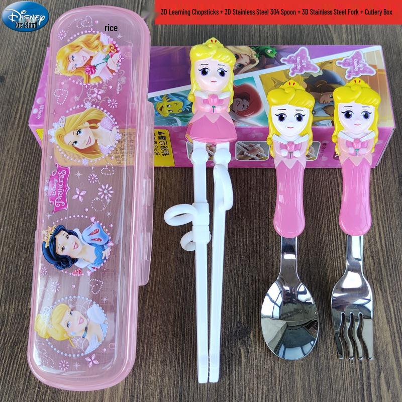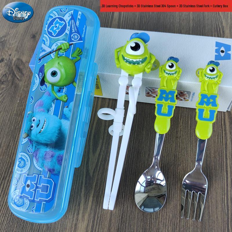 Детский набор столовых приборов из нержавеющей стали с 3D мультяшным дизайном: Вилка, ложка и тренировочные палочки для еды