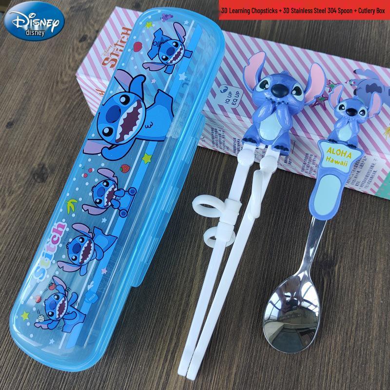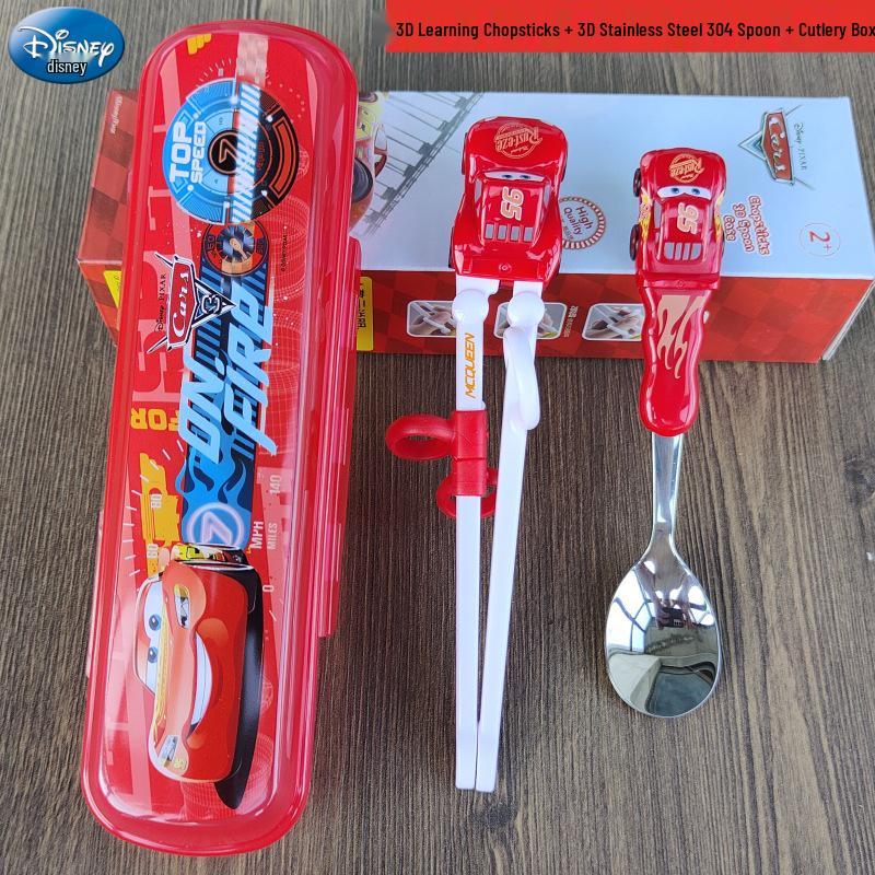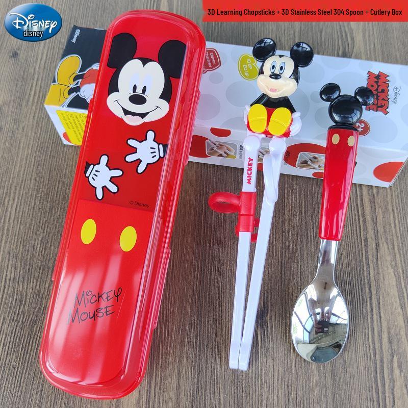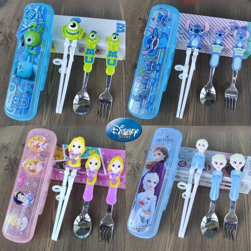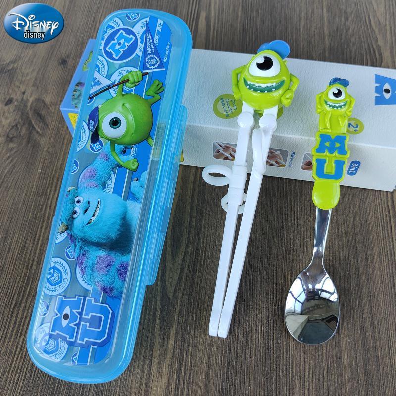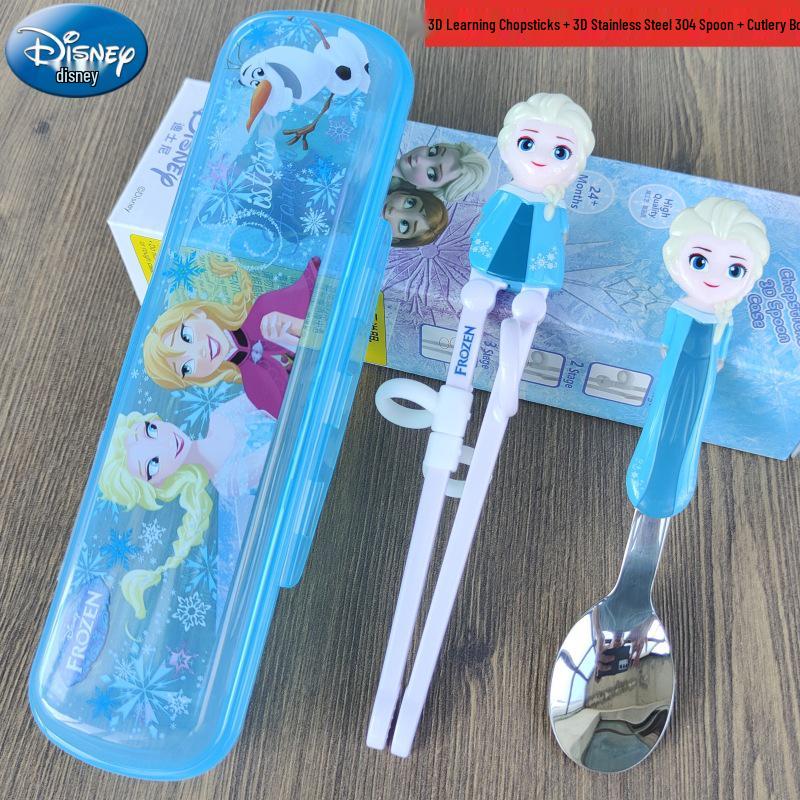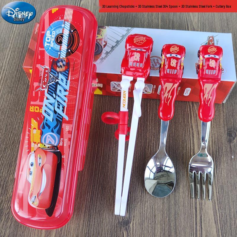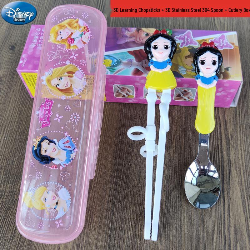 Детский набор столовых приборов из нержавеющей стали с 3D мультяшным дизайном: Вилка, ложка и тренировочные палочки для еды