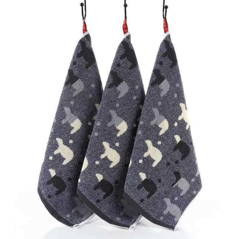 Мультяшное полотенце для рук с жаккардовым рисунком «Щенок и медвежонок», быстросохнущее, 100% хлопок, 25x25 см.
