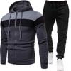 Мужской повседневный спортивный костюм 2024: Комплект из двух предметов: куртка с капюшоном в стиле пэчворк и длинные брюки для весны/осени. — купить товар онлайн с бесплатной доставкой по всему миру!
