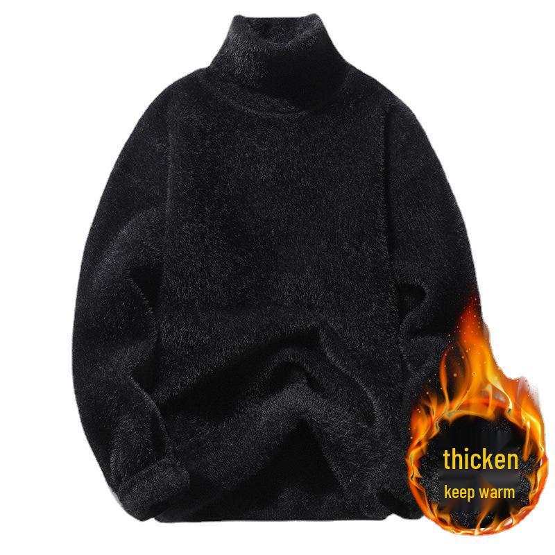 Мужской и женский толстый плюшевый свитер с высоким воротом облегающего кроя