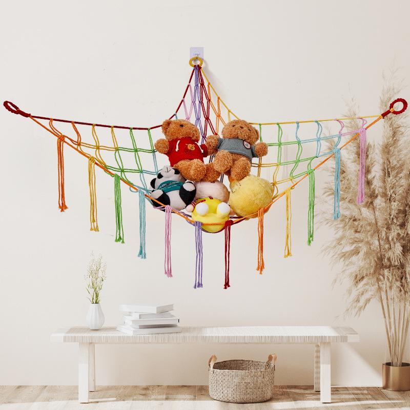 Handmade Cotton Rope Toy Storage Corner Net with Colorful Tassels