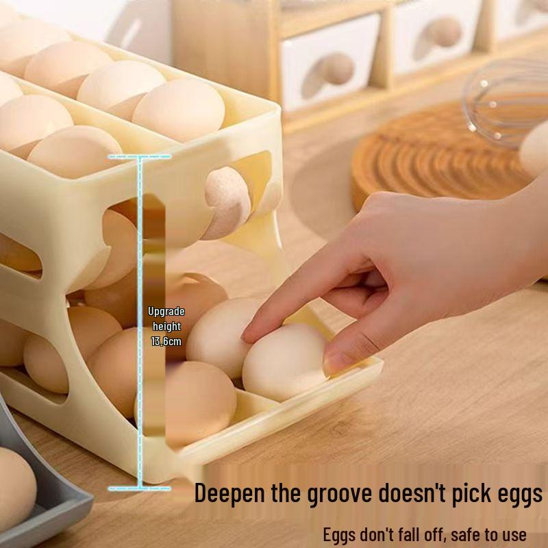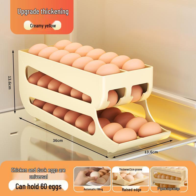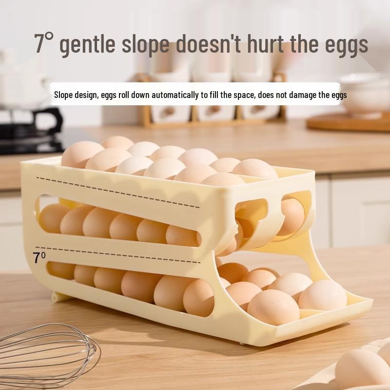 Двухслойный контейнер для хранения яиц: Многослойный наклонный дизайн с автоматическим роликом для дверцы холодильника - Идеально для хранения яиц