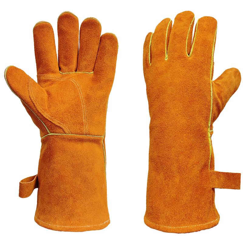 Перчатки из коровьей кожи, термостойкие, для барбекю и сварки - Изолированные алюминиевой фольгой, безопасные для камина и духовки.
