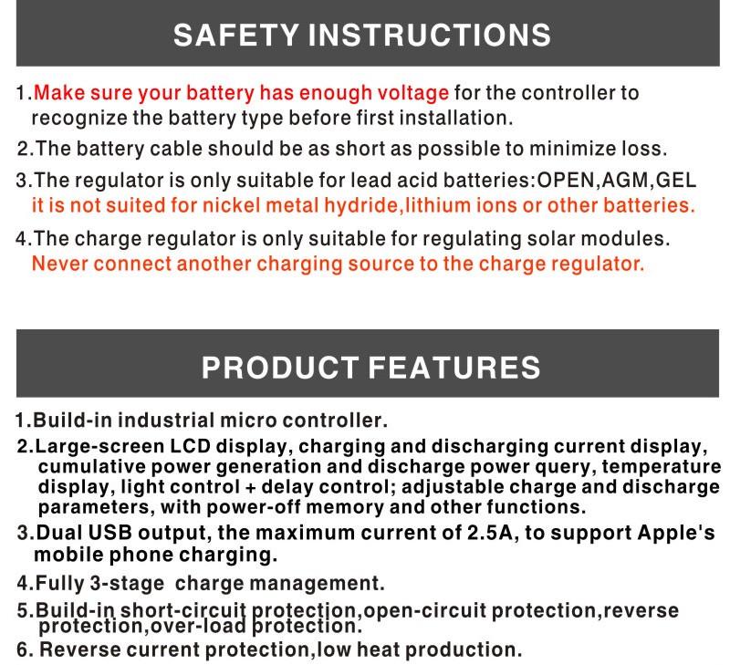 Двойной дисплей постоянного тока Солнечный контроллер 12В/24В ЖК-дисплей ШИМ Фотоэлектрический контроллер мощности