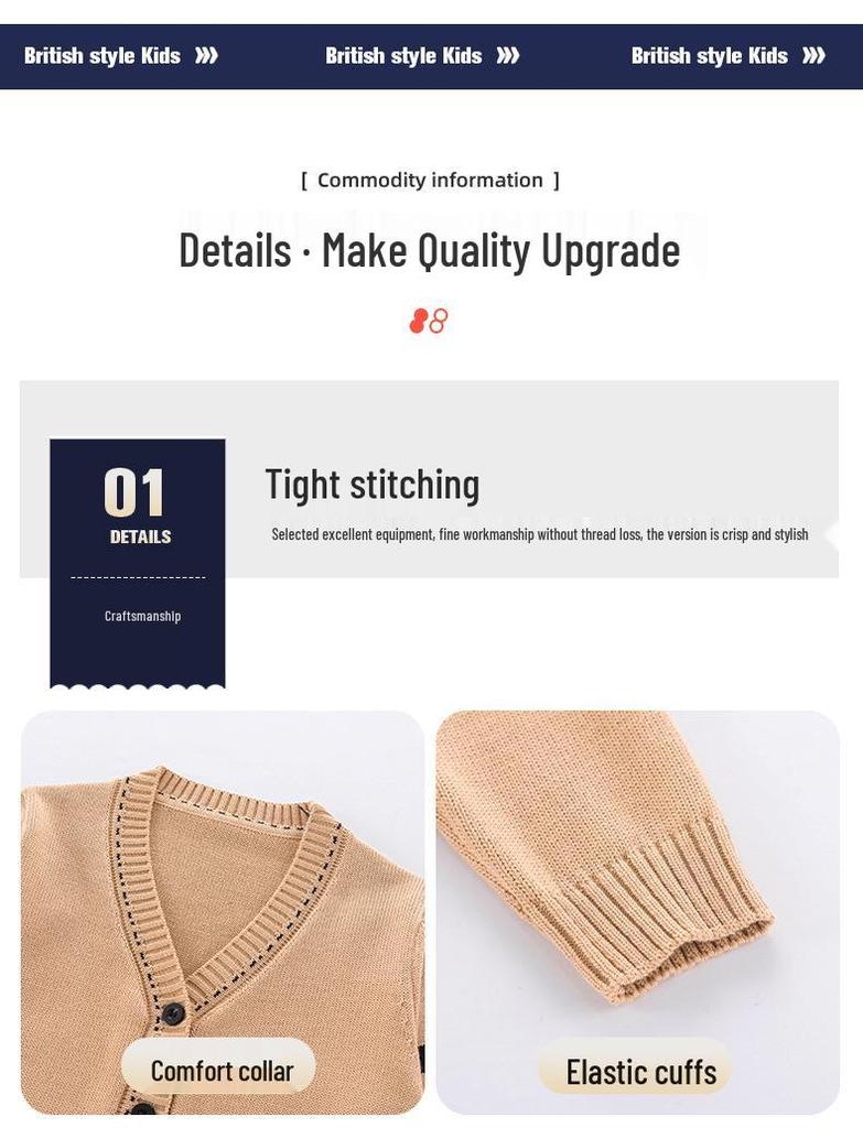 Этот восхитительный набор из трех предметов идеально подходит для юных учеников начальной школы и детского сада.. Разработанный специально для переходных сезонов весны и осени, он предлагает и стиль, и комфорт.. Изготовленный из высококачественного хлопка, комплект обеспечивает мягкое и дышащее ношение для активных детей.. Ансамбль включает классический школьный кардиган в британском стиле, который прекрасно дополняет другие предметы, что делает его идеальным выбором для школьной формы.. Идеальный для того, чтобы согреть детей в прохладные месяцы, этот комплект сочетает в себе традиционное очарование с практичным комфортом.